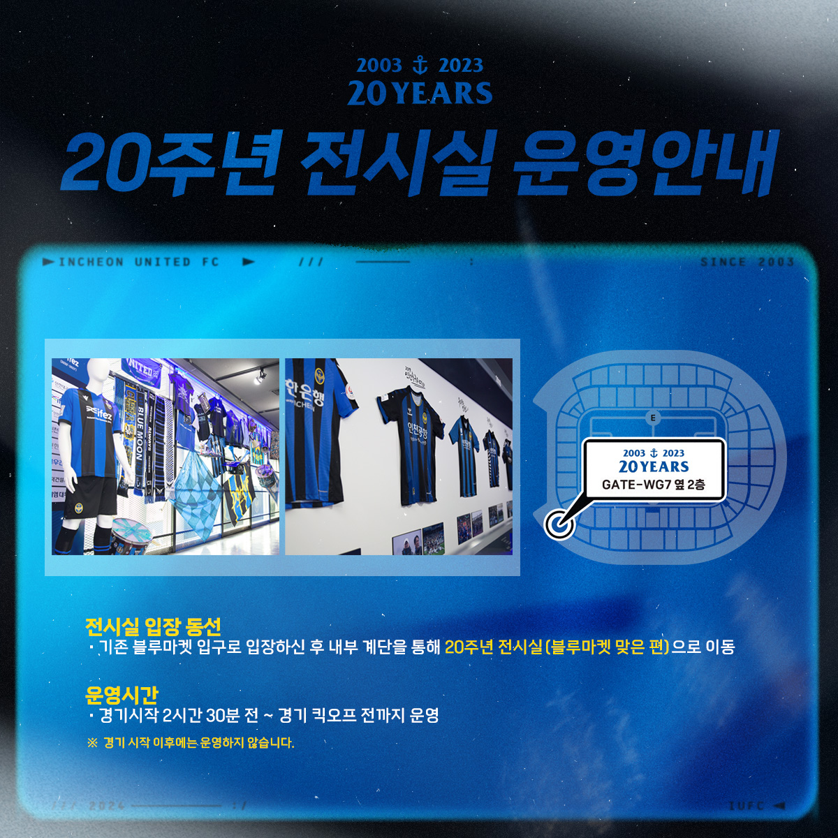 - 구단 20주년 전시실 운영(블루마켓 맞은편)