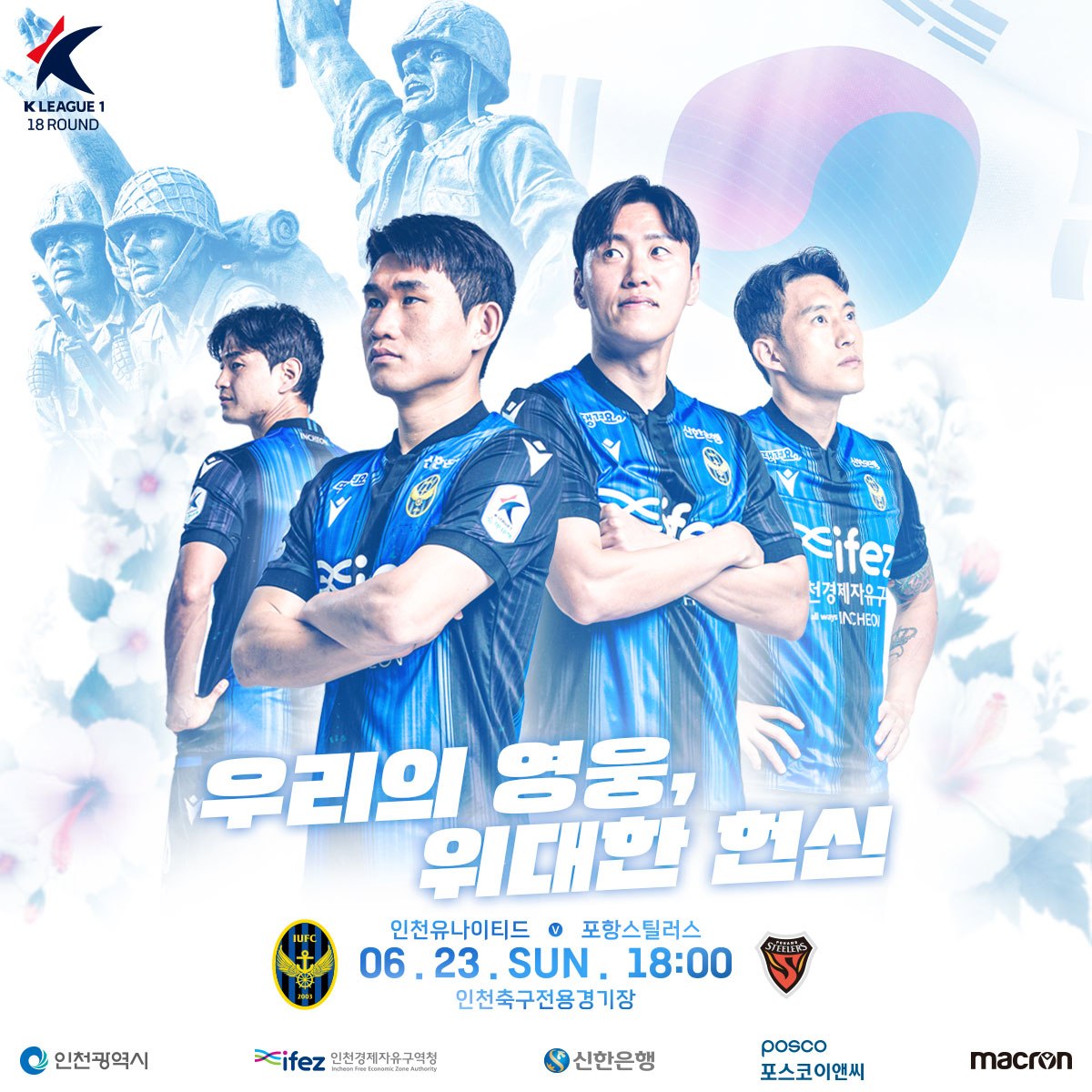 6월 23일 인천과 포항의 경기는 호국보훈의 달 기념 경기로 진행됩니다.