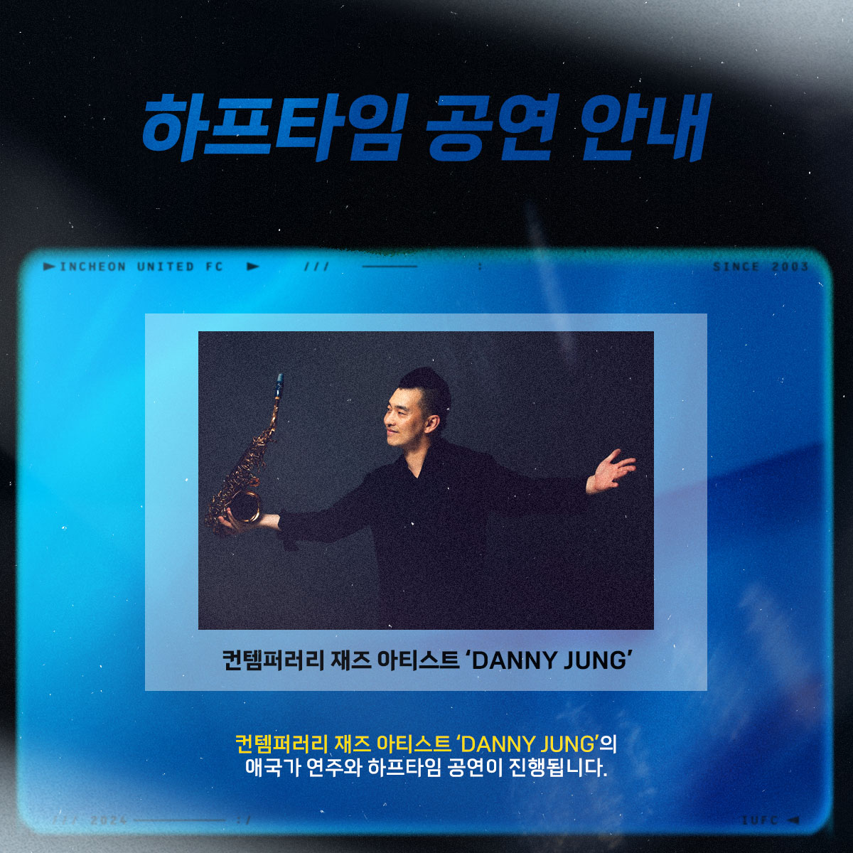 포항전 홈 경기 전에 컨템퍼러리 재즈 아티스트 대니 정(Danny Jung)의 애국가 연주가 진행됩니다.