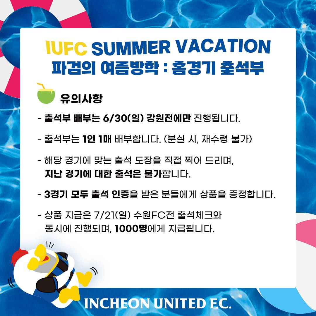 ※ 신포동 블루마켓 플래그십 스토어, 인천유나이티드 카페에서도 오늘(6.28.(금))부터 출석부를 수령하실 수 있습니다.