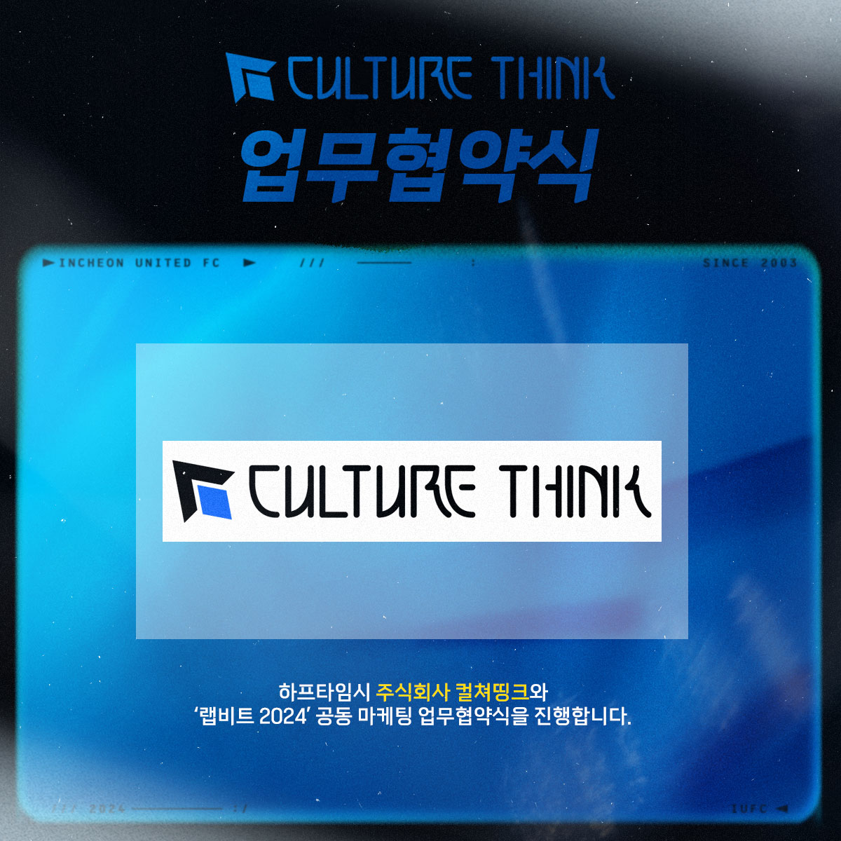 이번 홈 경기 전 주식회사 컬쳐띵크와 업무 협약을 체결하고, 양 측은 오는 9월 인천 송도에서 열리는 뮤직 페스티벌 '랩비트 2024' 공동 마케팅을 펼칠 예정입니다.