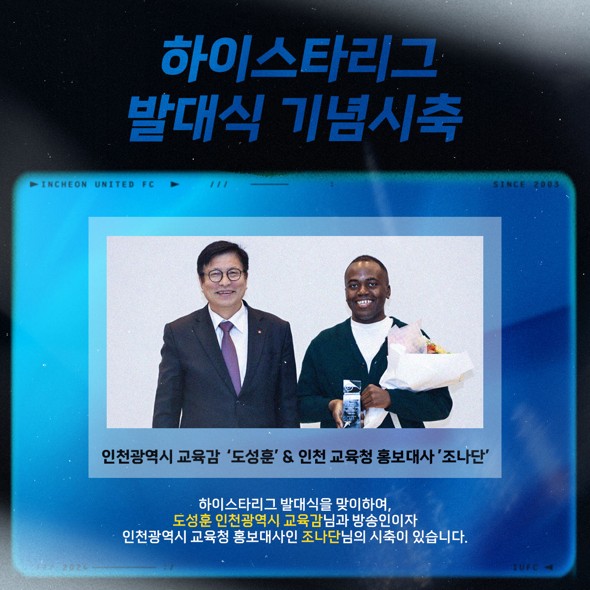 인천광역시 교육청과 구단이 공동 주최하는 하이스타리그 발대식을 맞이하여,