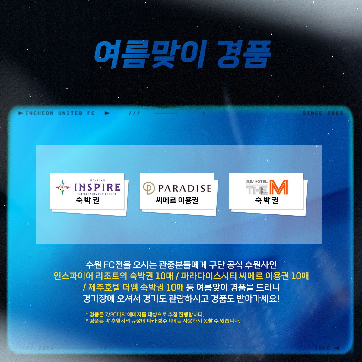 여름 휴가 시즌을 맞이하여 수원FC전에 오시는 관중분들 중 추첨을 통해