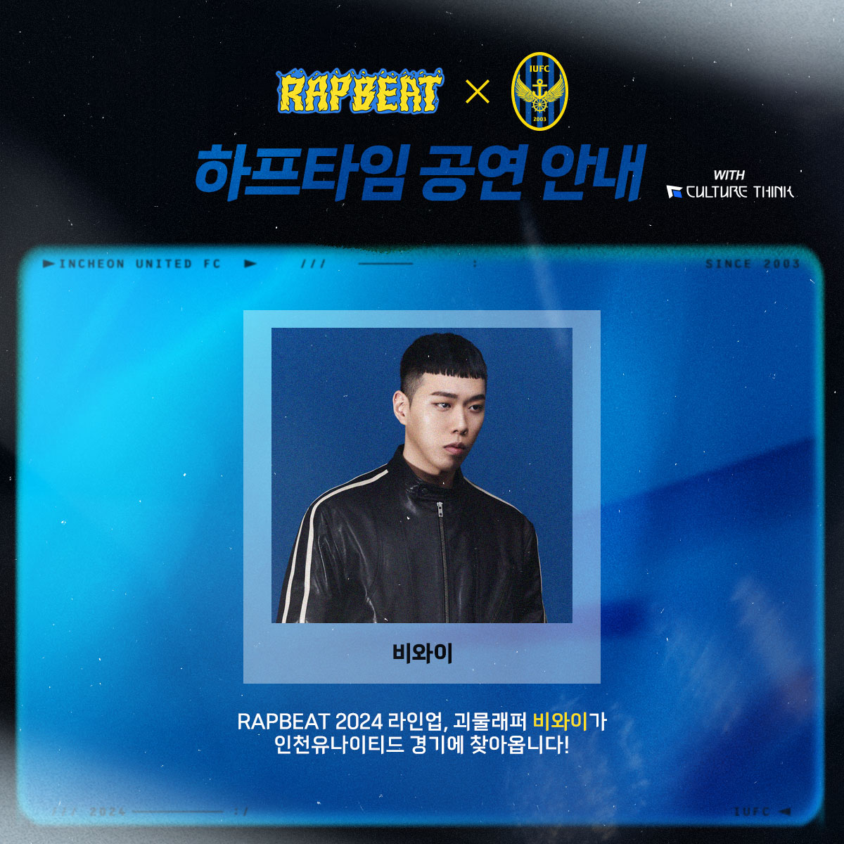 인천의 아들! 인천의 자랑! 인천 연수구 출신 비와이의 공연이 홈 경기 하프타임에 진행됩니다!