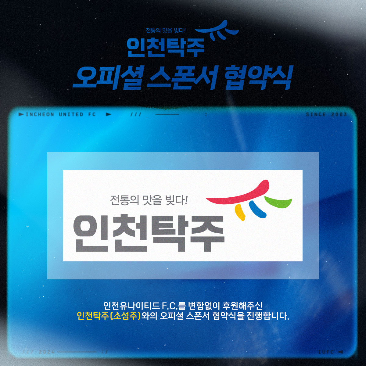 홈 경기 당일 구단과 인천탁주(소성주)의 오피셜 스폰서 협약식이 진행됩니다.
