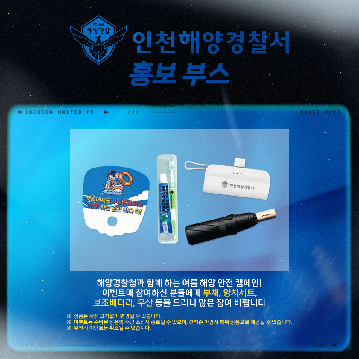 ※ 이벤트는 준비된 상품의 수량 소진시 종료될 수 있으며, 선착순 마감시 하위 상품으로 제공될 수 있습니다.인천해양경찰서 홍보 부스
