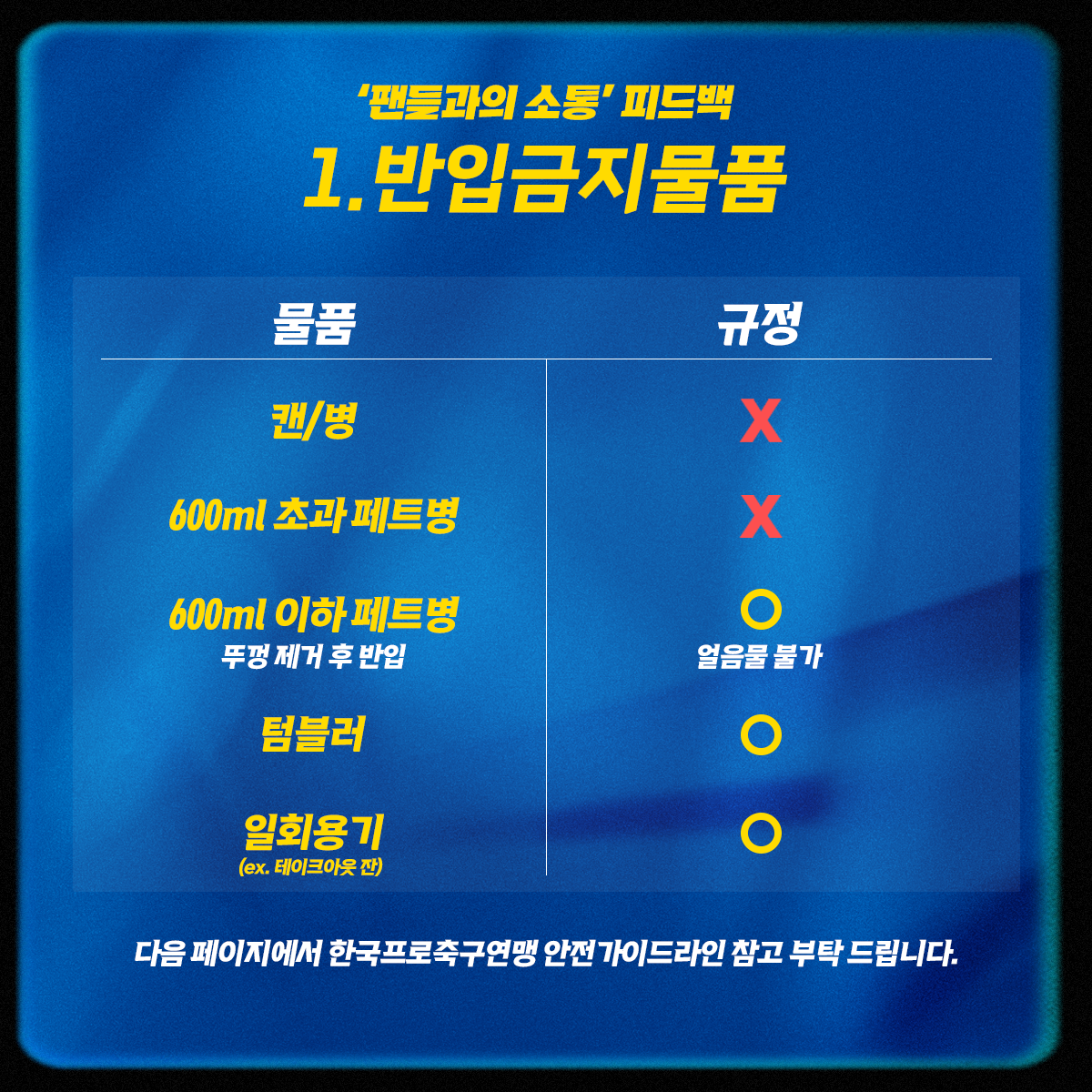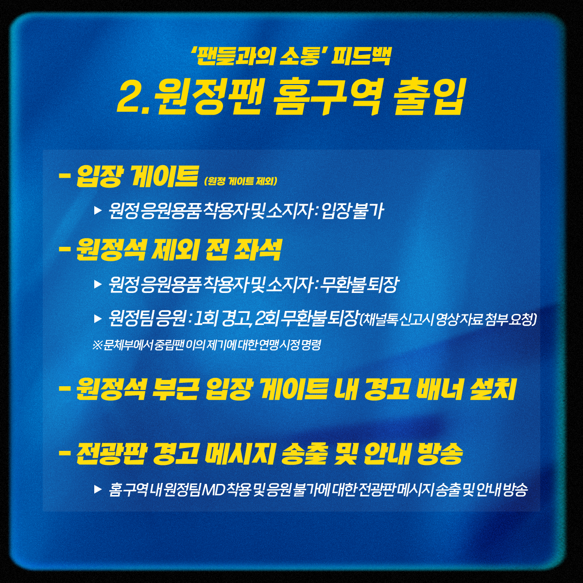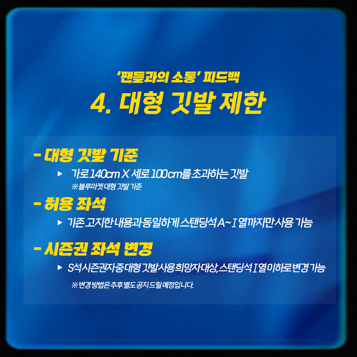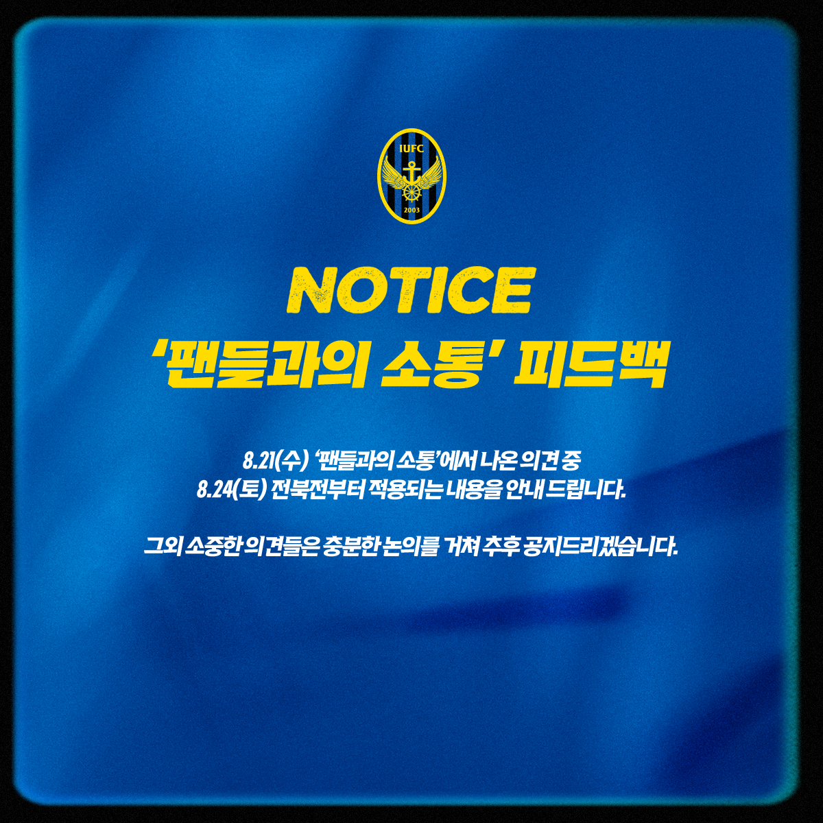 8.21.(수) '팬들과의 소통'에서 나온 의견 중 8.24.(토) 전북전부터 적용되는 내용을 안내드립니다.