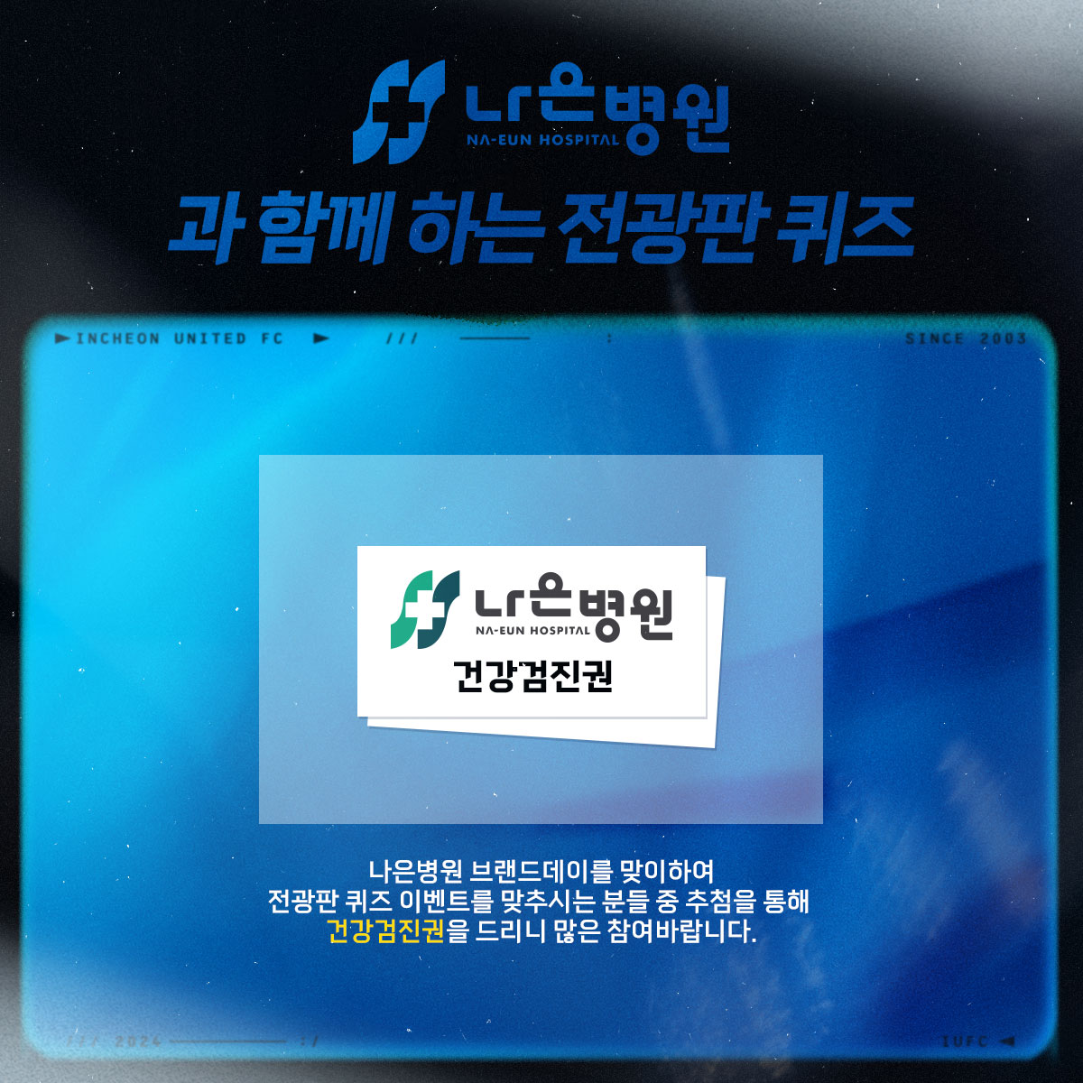 나은병원 브랜드데이를 맞이하여 전광판 퀴즈 이벤트를 맞추시는 분들 중 추첨을 통해 건강검진권을 드립니다!