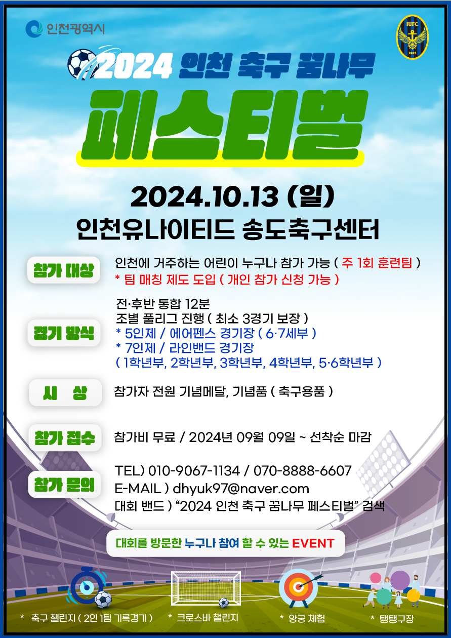 - 대회명칭 : 2024 인천축구 꿈나무 페스티벌