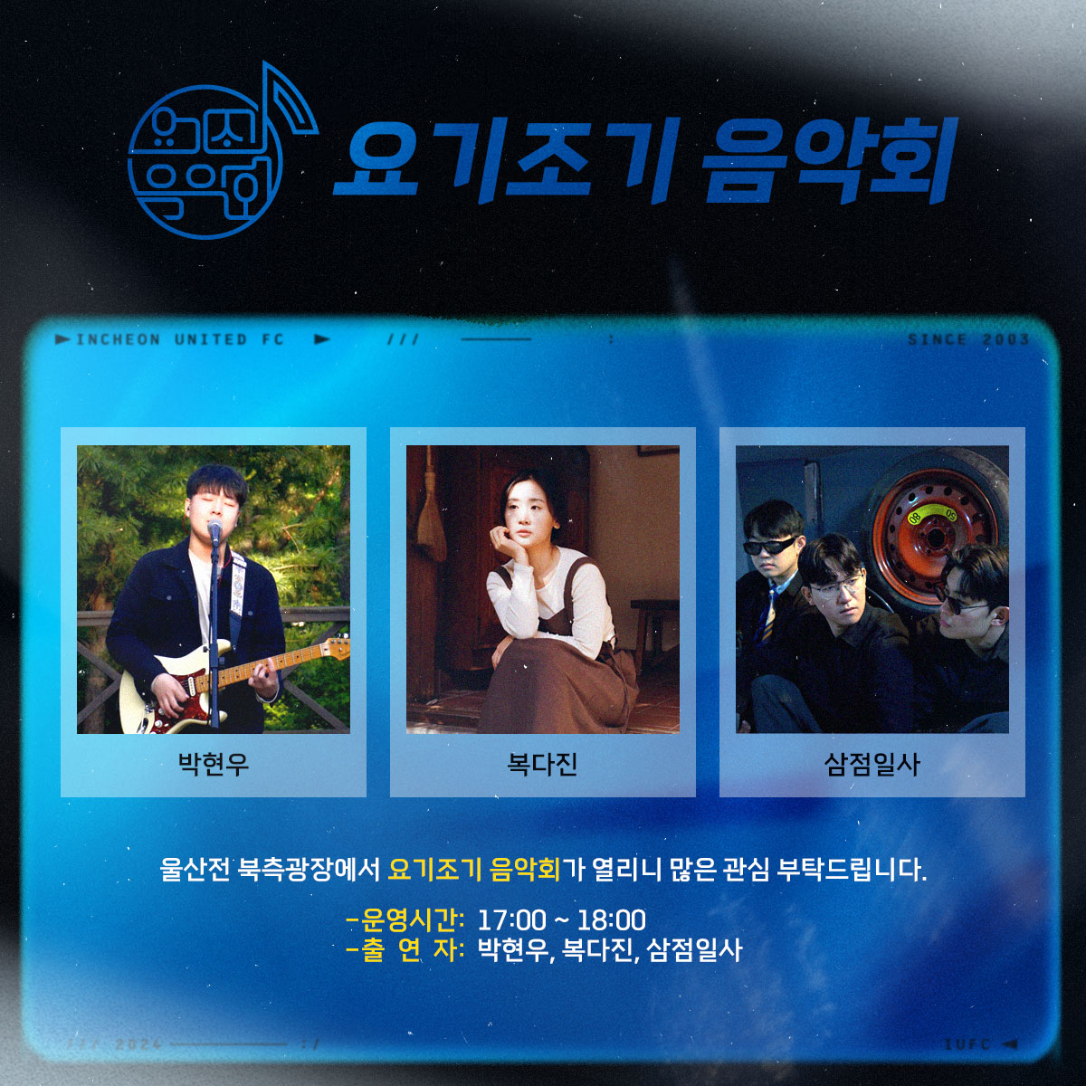 이번 홈 경기 북측광장에서는 '요기조기 음악회'가 열립니다.