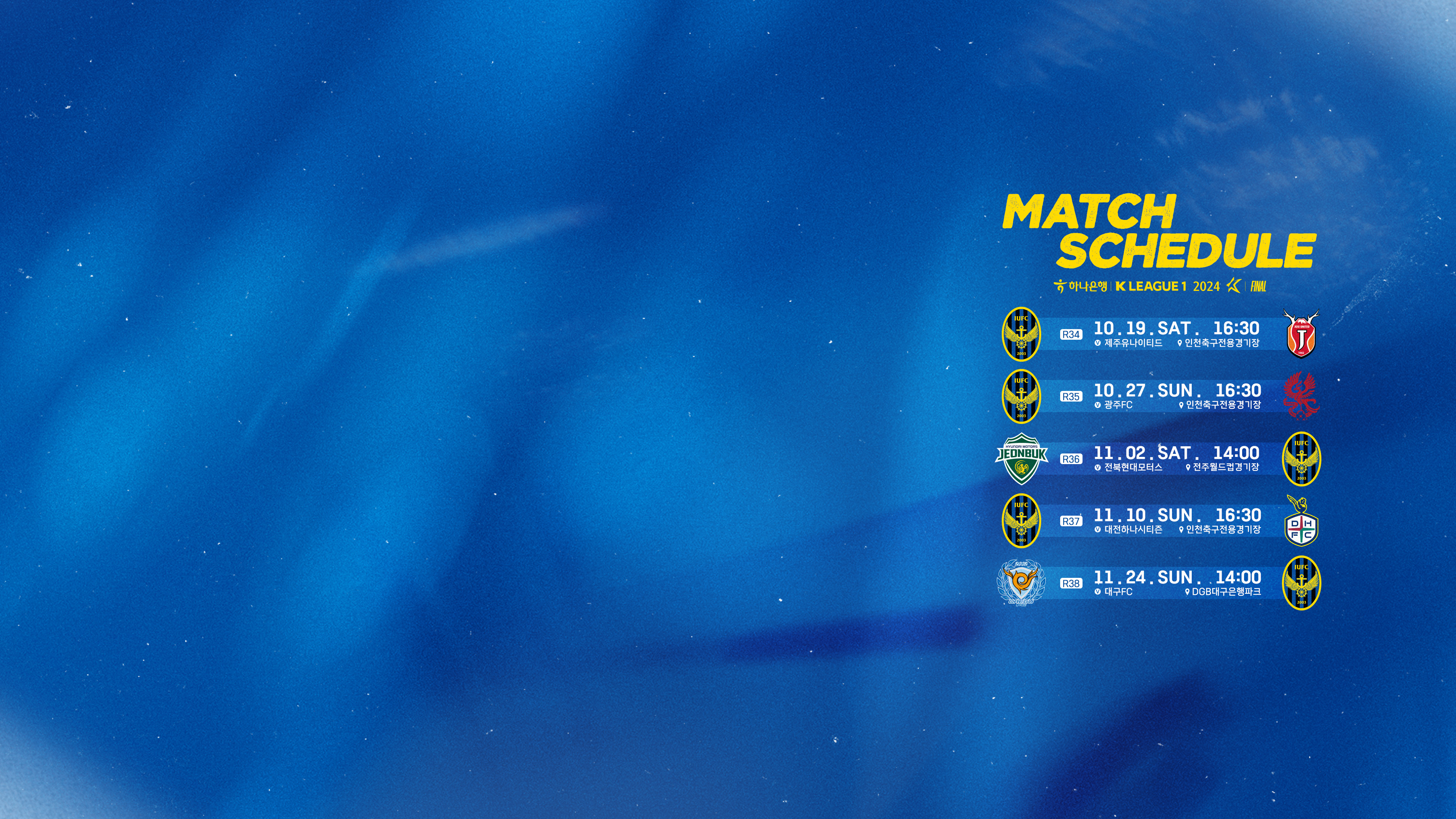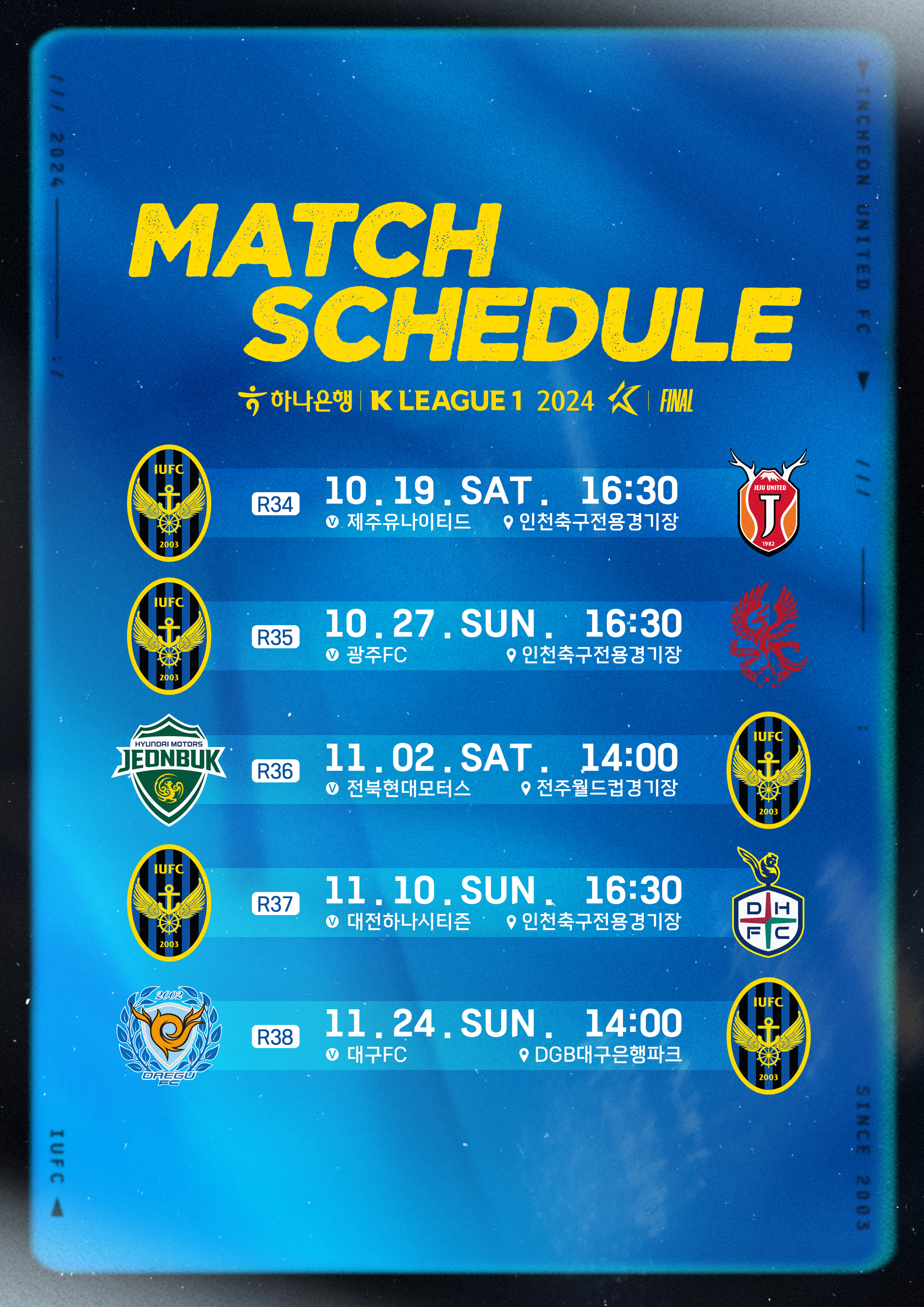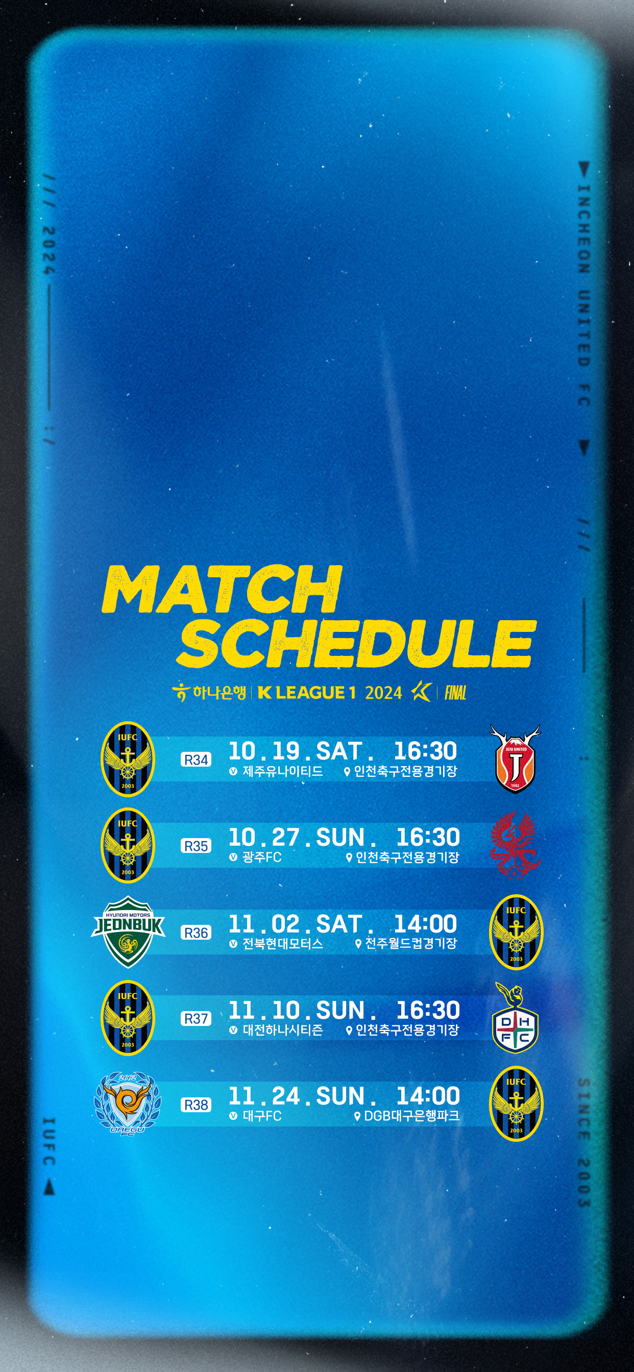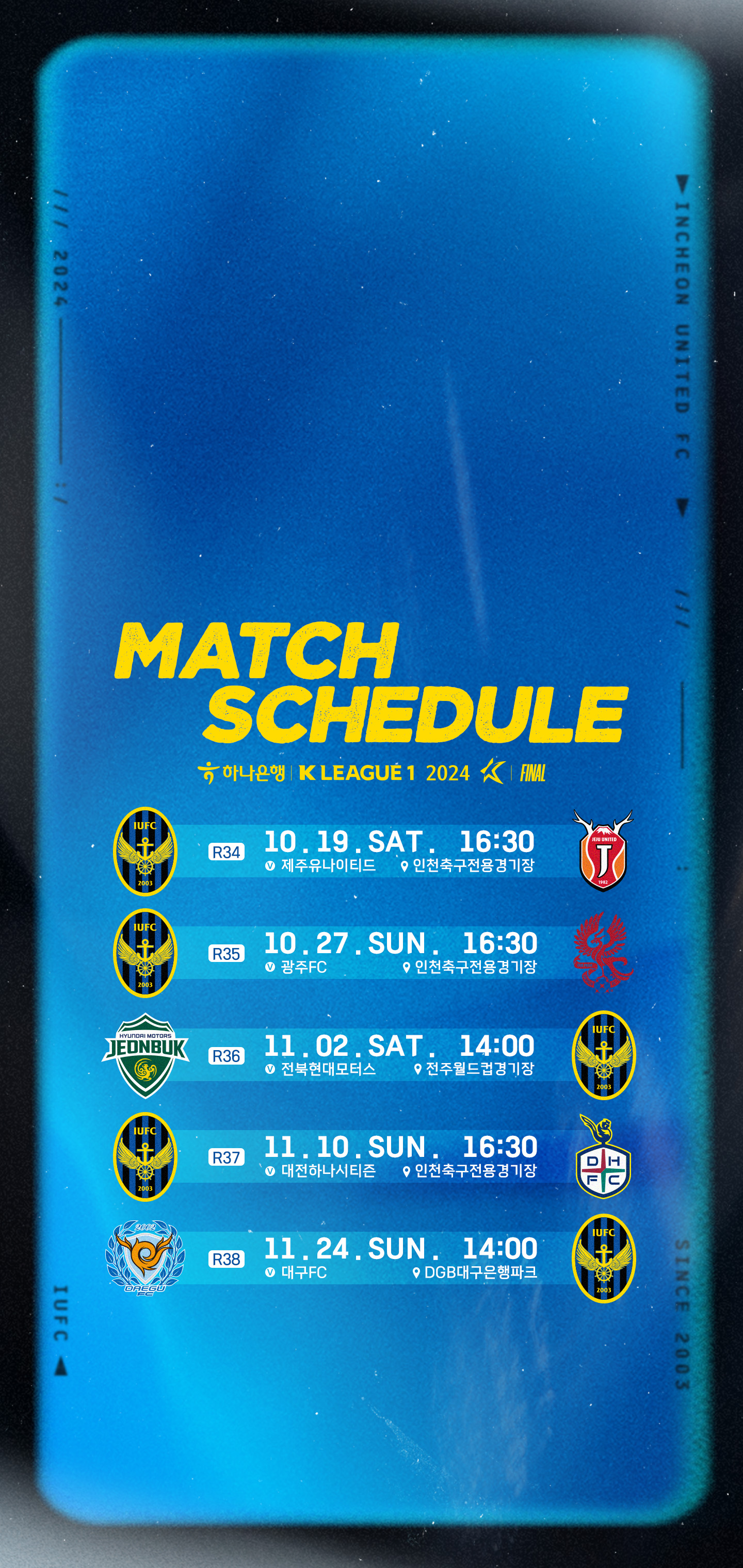 안녕하세요, 인천유나이티드입니다. 하나은행 K리그 1 2024 파이널라운드 일정 안내해드립니다.