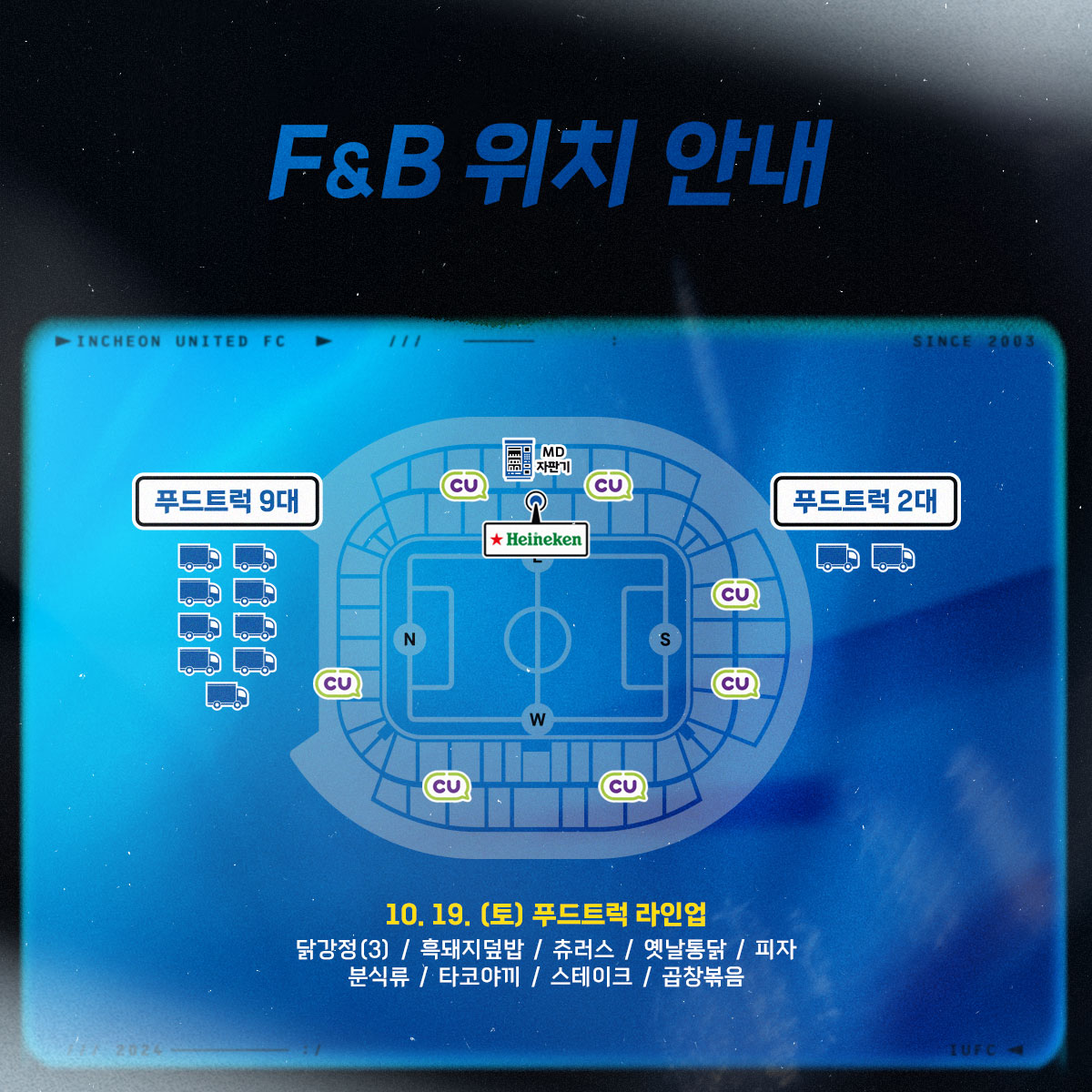 또한, 경기장 내 E석 하이네켄펍에서는 생맥주를 판매하며, 경기장 내 CU 편의점 7곳을 운영할 예정입니다.