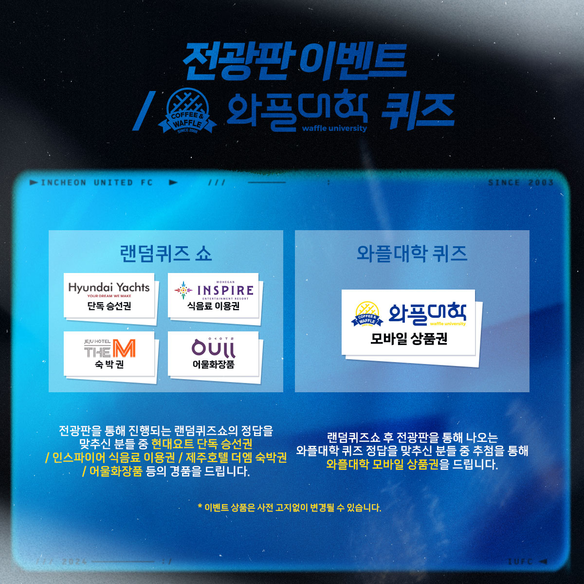 - 현대요트&인스파이어&제주호텔&와플대학과 함께 하는 경기 전 전광판 이벤트