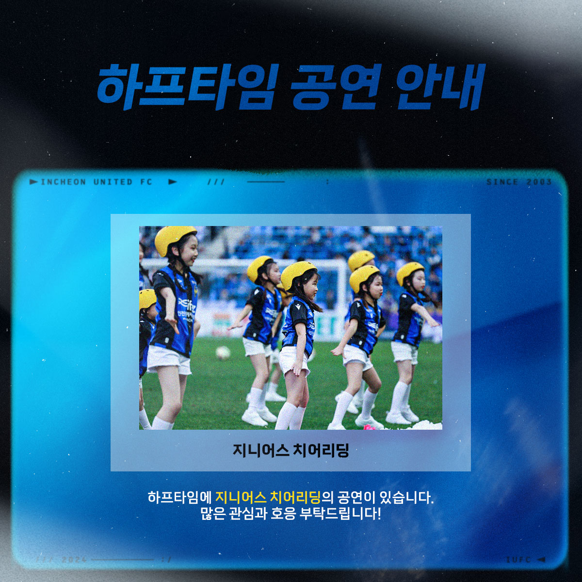 하프타임에 '지니어스 치어리딩' 공연이 있습니다. 많은 관심과 호응 부탁드립니다!