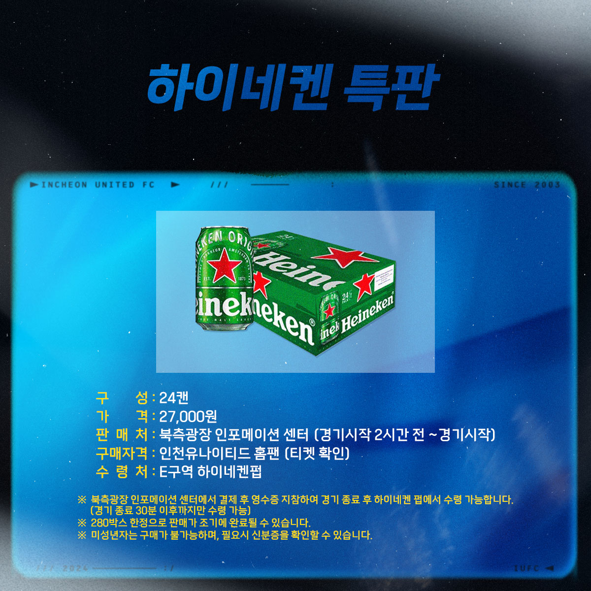 하이네켄펍 이용고객 대상으로 경기 종료 후 딱 30분간 하이네켄 캔맥주를 특별 할인 판매합니다!