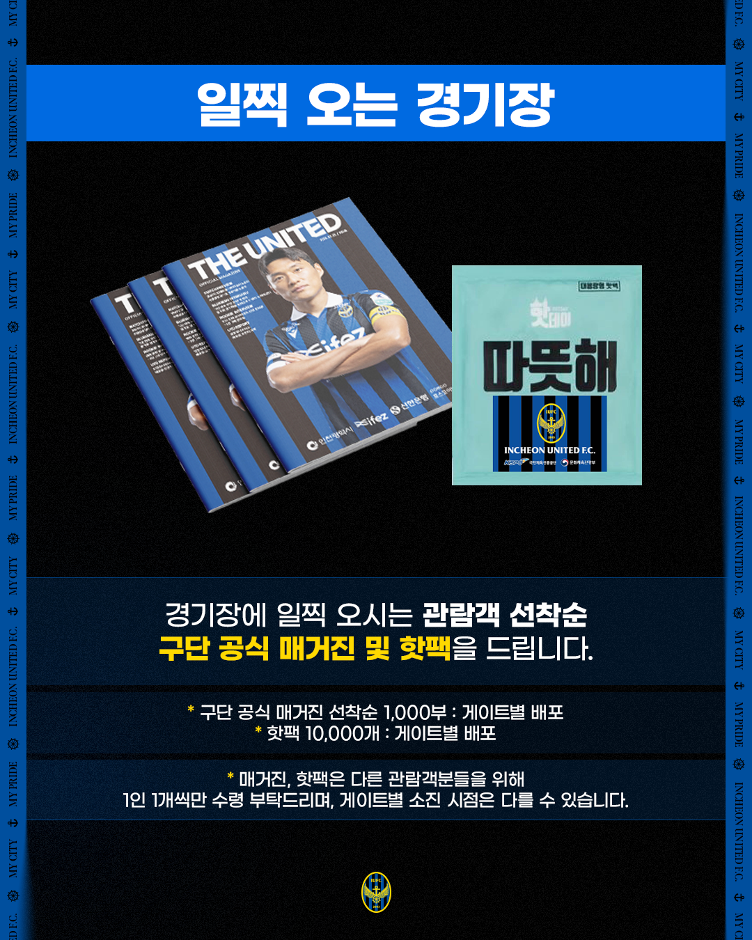 - 각 입장게이트에서 핫팩&구단 공식 매거진 1,000부 선착순 증정