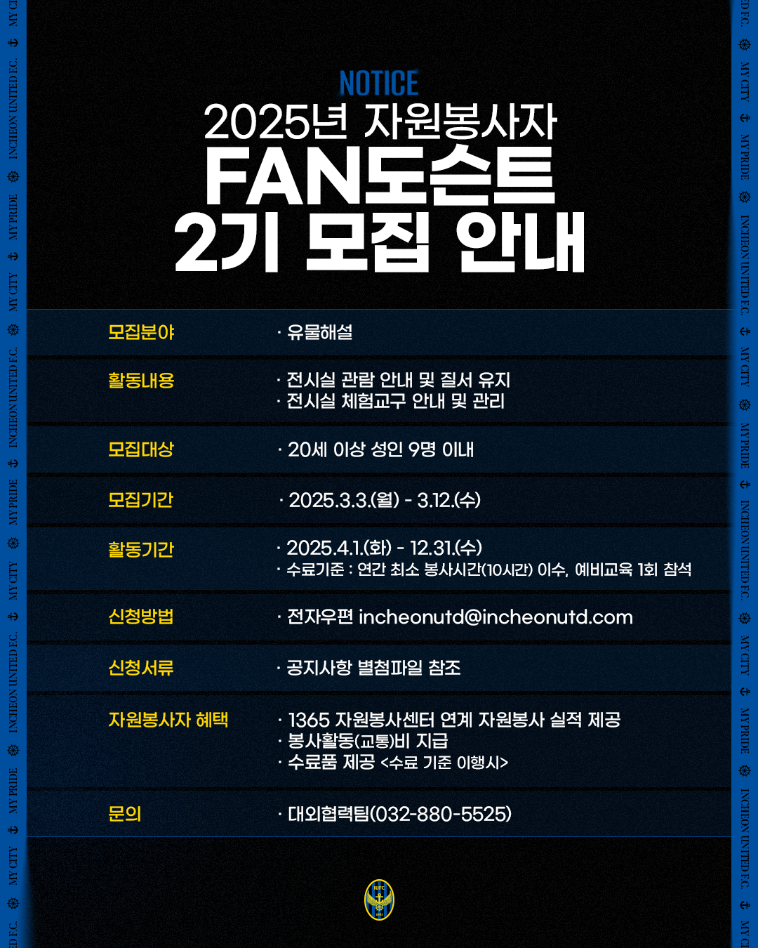 * 전자우편 : incheonutd@incheonutd.com , 파일명-[도슨트2기신청서(홍길동)]