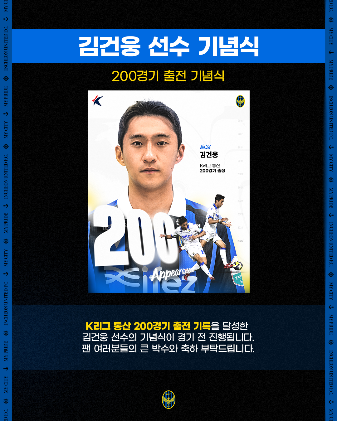 - 김건웅 선수 K리그 통산 200경기 출전 기념식