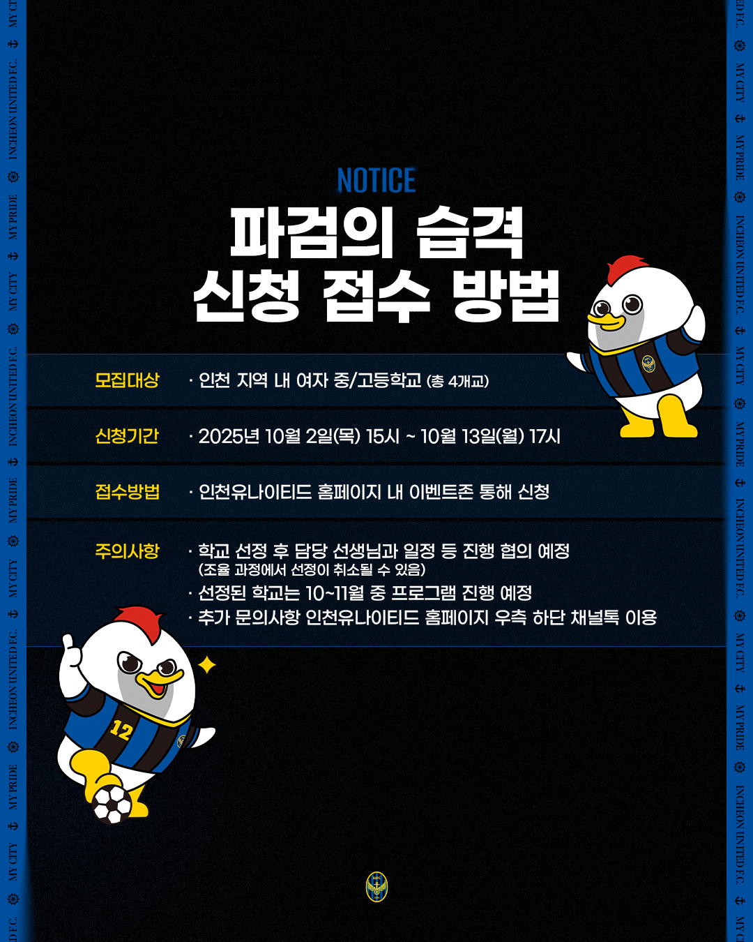 - 인천유나이티드 홈페이지 ▶ 팬존 ▶ 이벤트 페이지 내 신청