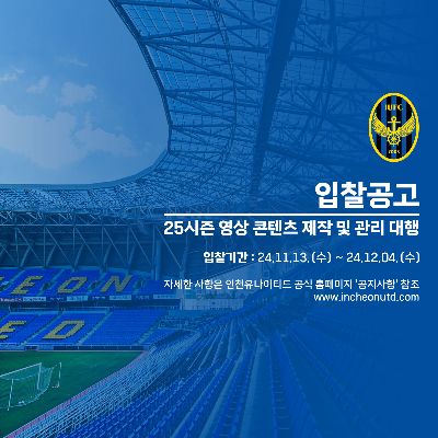 [입찰공고] 2025 인천유나이티드 영상 제작 및 관리 대행용역