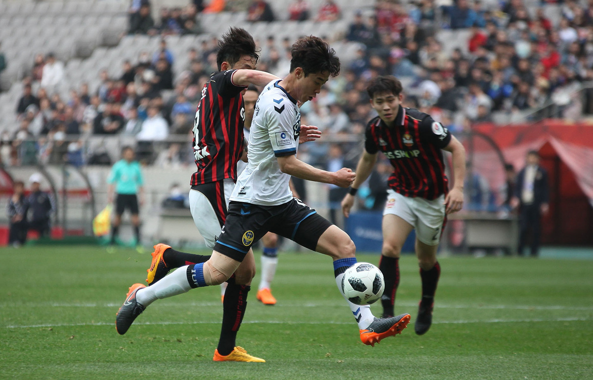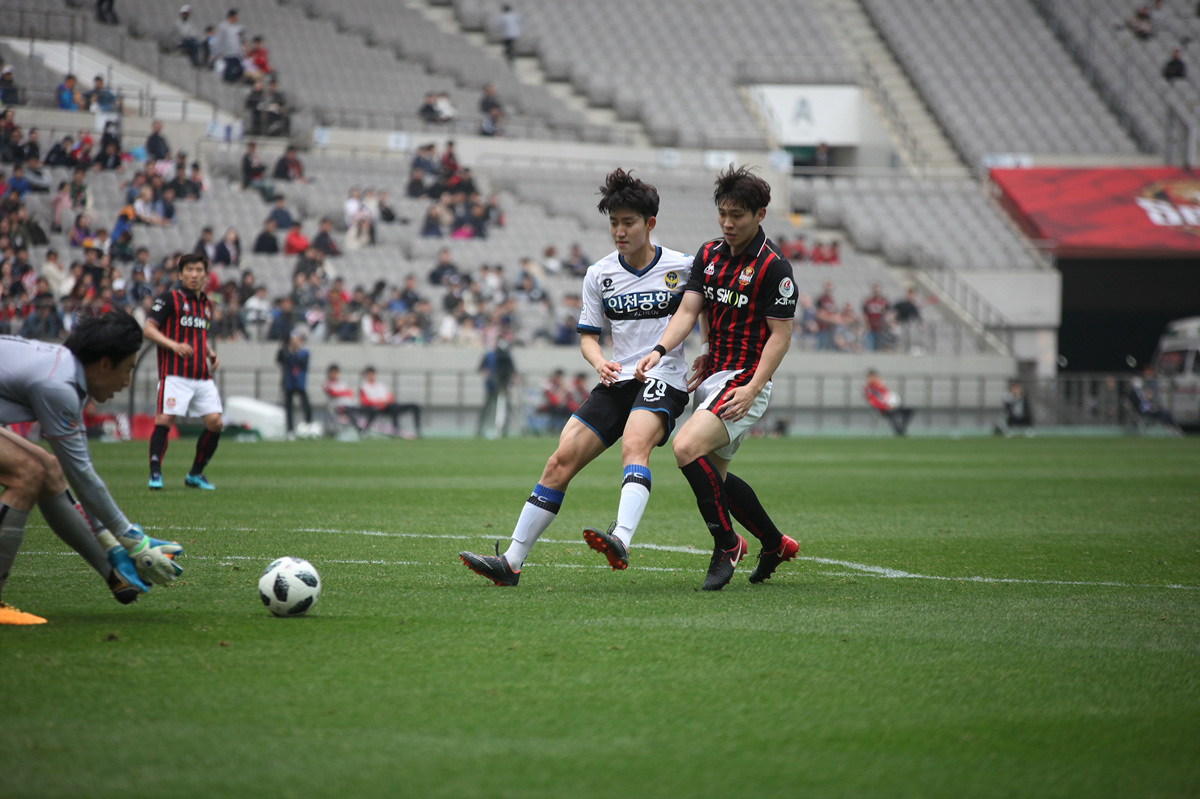 2018년 4월 1일. 서울월드컵경기장에서 열린 'KEB하나은행 K리그 1 2018' 4R 인천유나이티드와 FC서울의 경기 사진입니다. 모든 사진의 저작권은 인천유나이티드 프로축구단과 이상훈 UTD기자에게 있으며, 더 많은 사진은 UTD기자단 페이스북 페이지(https://www.facebook.com/iufcpress)에서 확인할 수 있습니다.