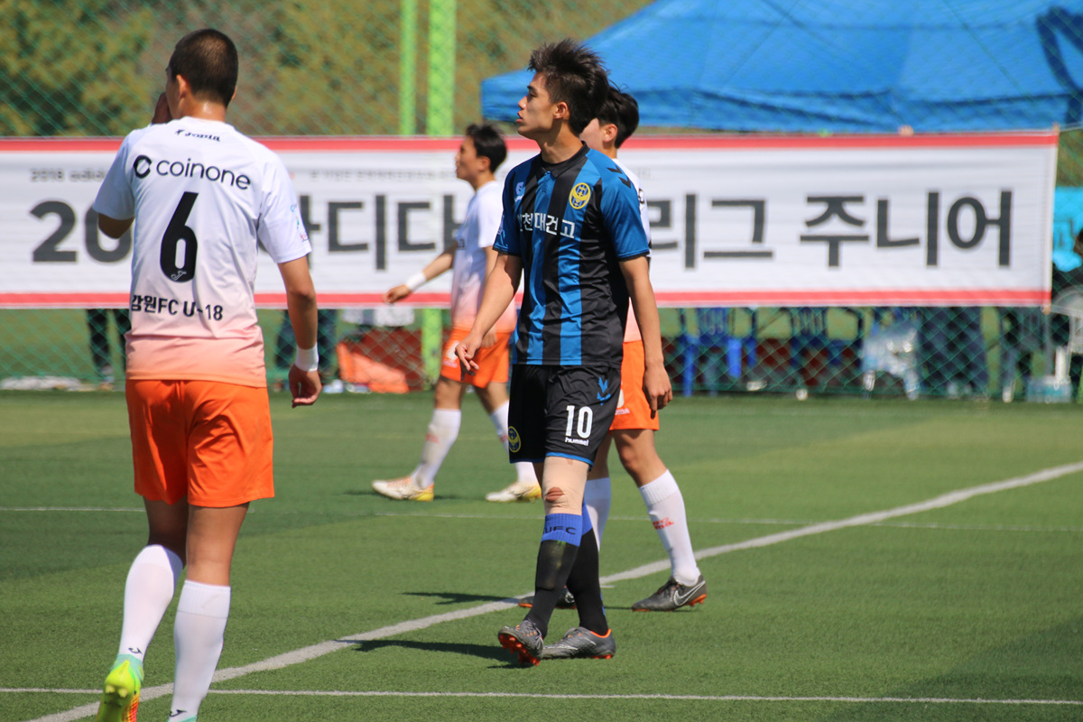 2018년 4월 21일. 인천송도LNG축구장에서 열린 '2018 아디다스 K리그 주니어' A조 7R 인천유나이티드 U-18 대건고와 강원FC U-18 강릉제일고의 경기 사진입니다. 모든 사진의 저작권은 인천유나이티드 프로축구단과 박성아 UTD기자에게 있으며, 더 많은 사진은 UTD기자단 페이스북 페이지(https://www.facebook.com/iufcpress)에서 확인할 수 있습니다.