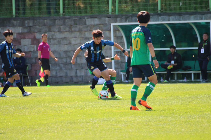 2018년 5월 19일. 인천환경공단 승기사업소 내 천연잔디구장에서 열린 '2018 아디다스 K리그 주니어' A조 10R 인천유나이티드 U-18 대건고와 안산그리너스 U-18의 경기 사진입니다. 모든 사진의 저작권은 인천유나이티드 프로축구단과 박성아 UTD기자에게 있으며, 더 많은 사진은 UTD기자단 페이스북 페이지(https://www.facebook.com/iufcpress)에서 확인할 수 있습니다.