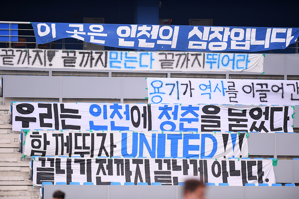 경기는 무득점 속 0-0으로 끝났고, 무관중 탓에 평소보단 허전했다. 그러나 인천 팬의 함성과 응원 문구가 텅 빈 그라운드를 가득 채웠다.