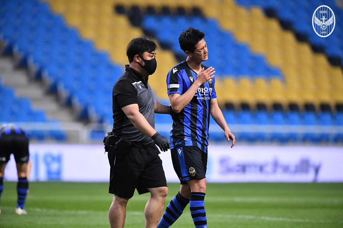 리그 3위 상주를 맞이해 나쁘지 않게 경기를 풀던 인천은 전반 종료 직전 악재를 맞았다. 김도혁과 함께 중원을 이끌어가던 문지환이 부상으로 교체 아웃 됐다. 최근 연패 동안 인천을 괴롭히고 있는 부상 악재가 또다시 등장했다. 인천은 전반 44분 문지환의 대체자로 이제호를 투입했다.