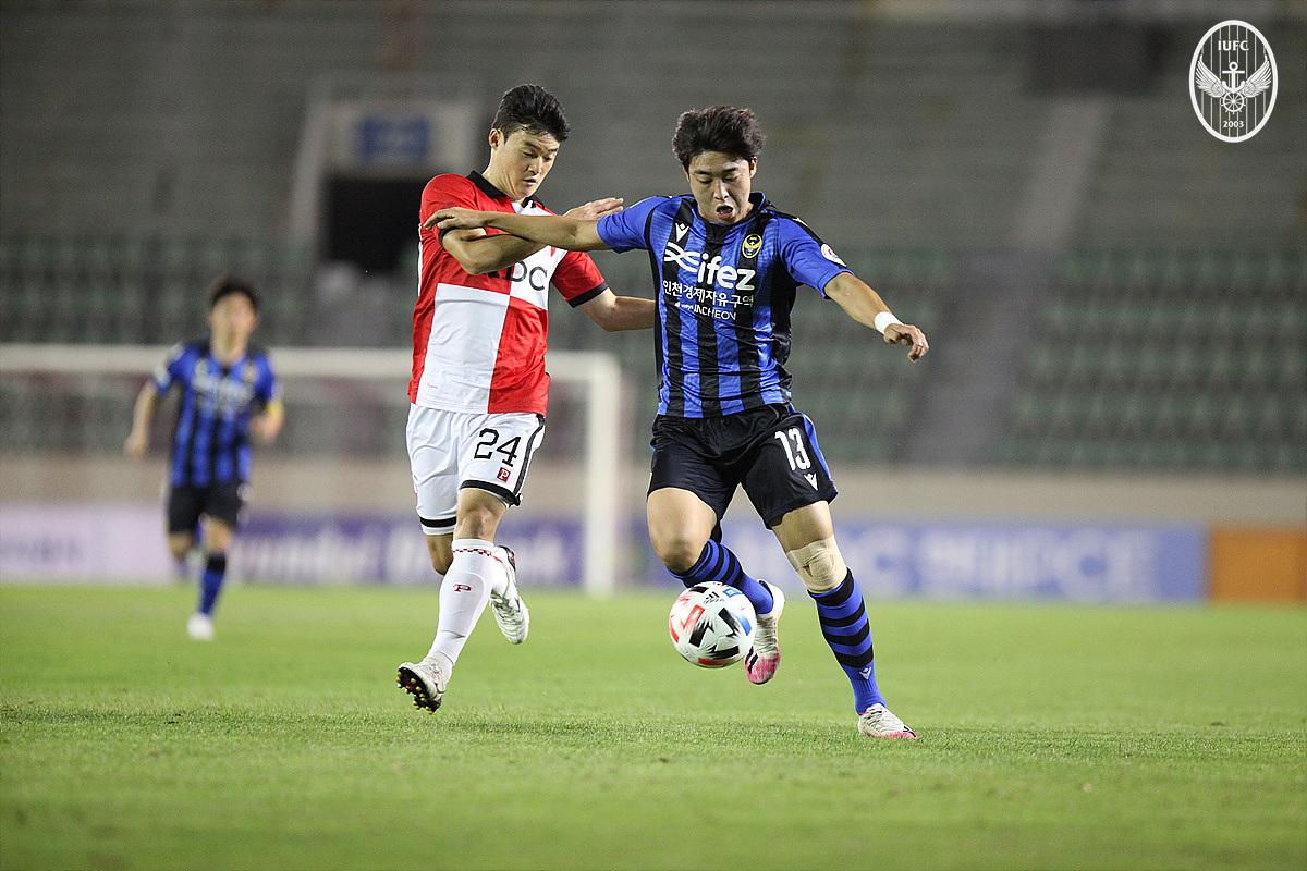 인천은 전반 이른 시간 위기를 맞았다. 호물로의 패스를 이어받은 이동준이 곧바로 슈팅을 가져갔고 그대로 골망을 가른 것. 하지만 이동준이 패스를 받는 과정에서 손에 맞는 동작이 있었고 핸드볼 반칙으로 골이 취소됐다. 전반 11분에는 김문환의 패스를 이동준이 김현에게 흘린 뒤 침투를 시도했다. 다시 패스를 이어받은 이동준이 김현에게 볼을 내줬고 김현이 곧바로 슈팅을 때렸으나 이태희의 선방에 막혔다. 이동준의 빠른 속도에 인천의 수비진은 고전했다.