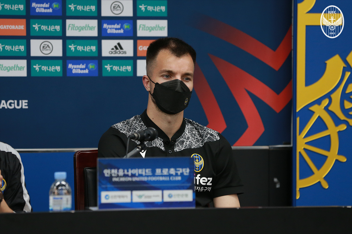 경기 후 진행된 수훈 선수 기자회견에서 무고사는 “먼저 오랜만에 인터뷰실에 와서 기쁘다”며 “0-1로 밀리는 상황에서 중요한 득점을 했고 경기를 역전해서 기쁘다”며 경기 소감을 전했다.