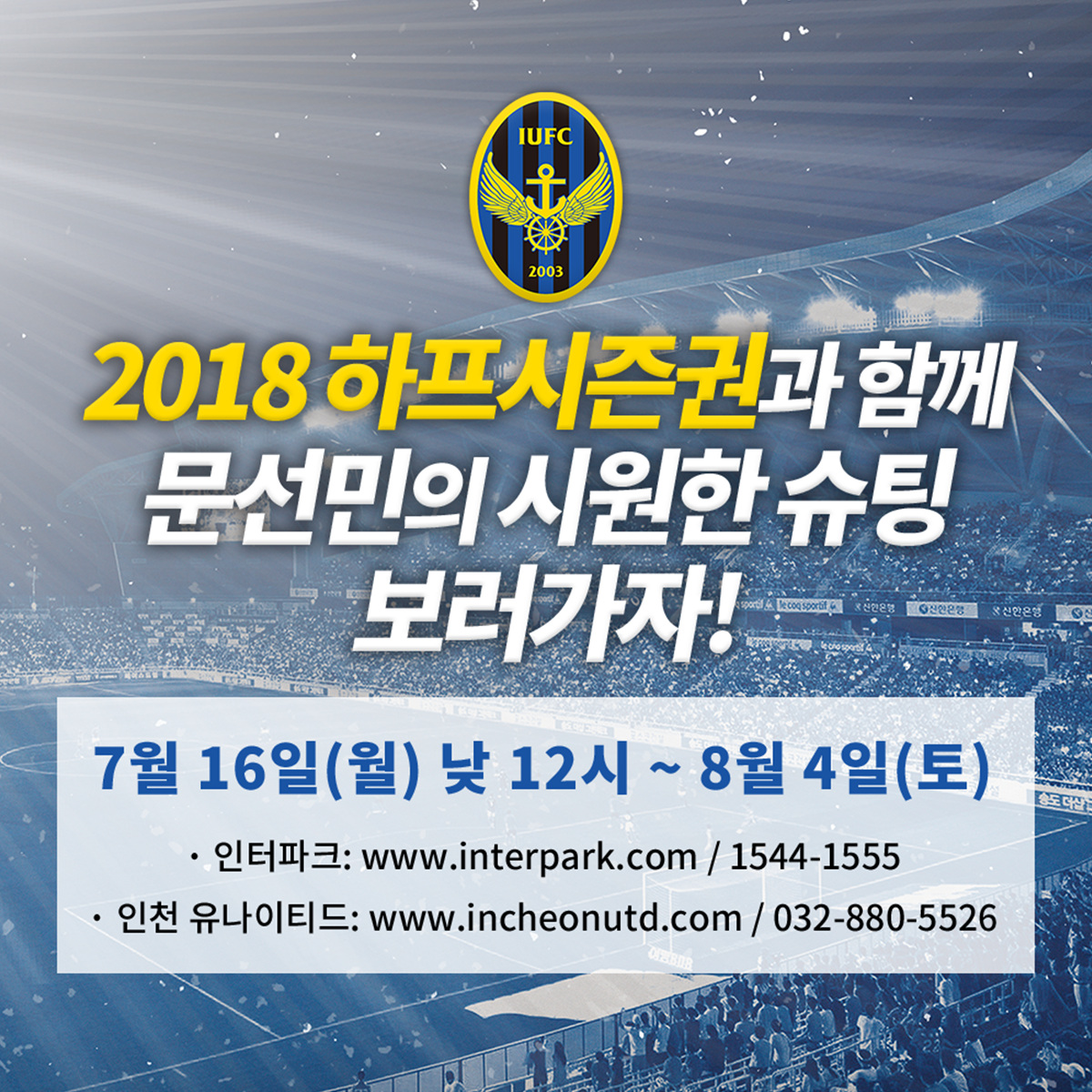 <문의> 마케팅커뮤니케이션팀 032-880-55262018 인천유나이티드 하프시즌권 출시 안내