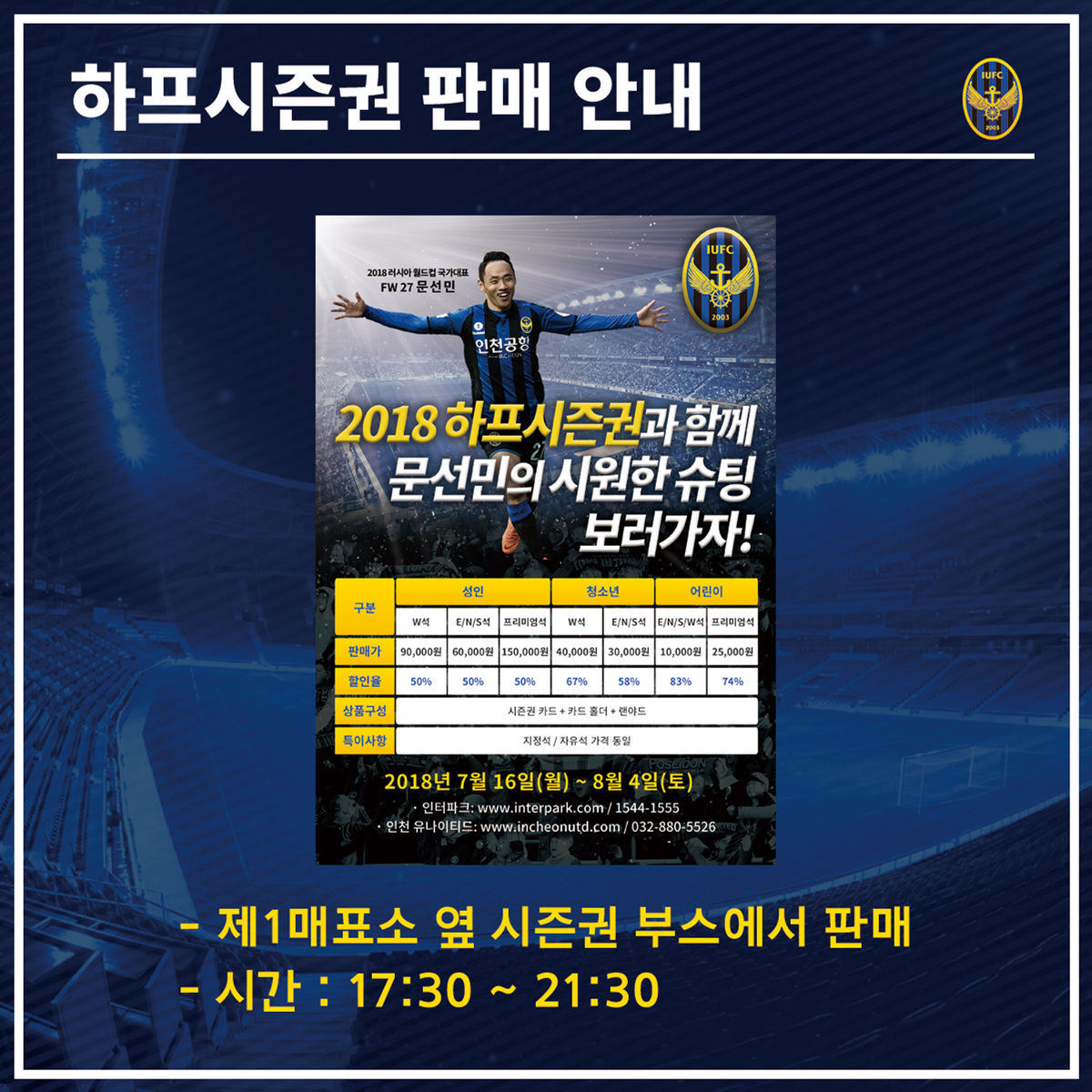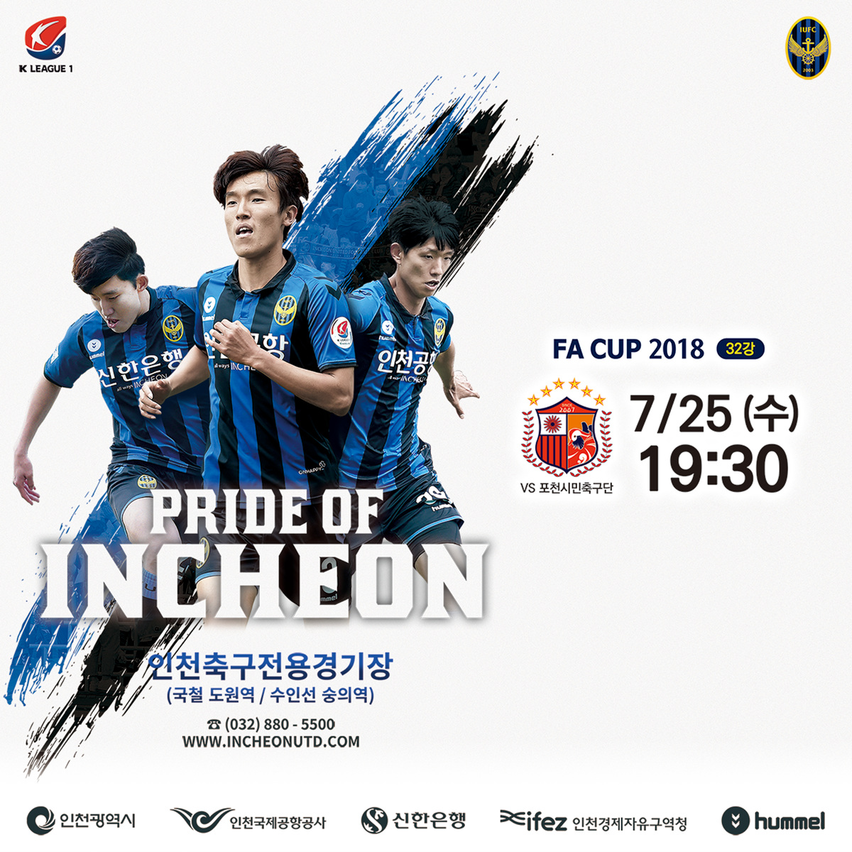 7/25(수) 오후 7시 30분. 우리 인천유나이티드가 포천시민축구단을 상대로 FA컵 32강 홈경기를 치릅니다. 아시아로 향하는 여정, 인천의 위대한 도전에 팬 여러분 모두 함께해주세요♡