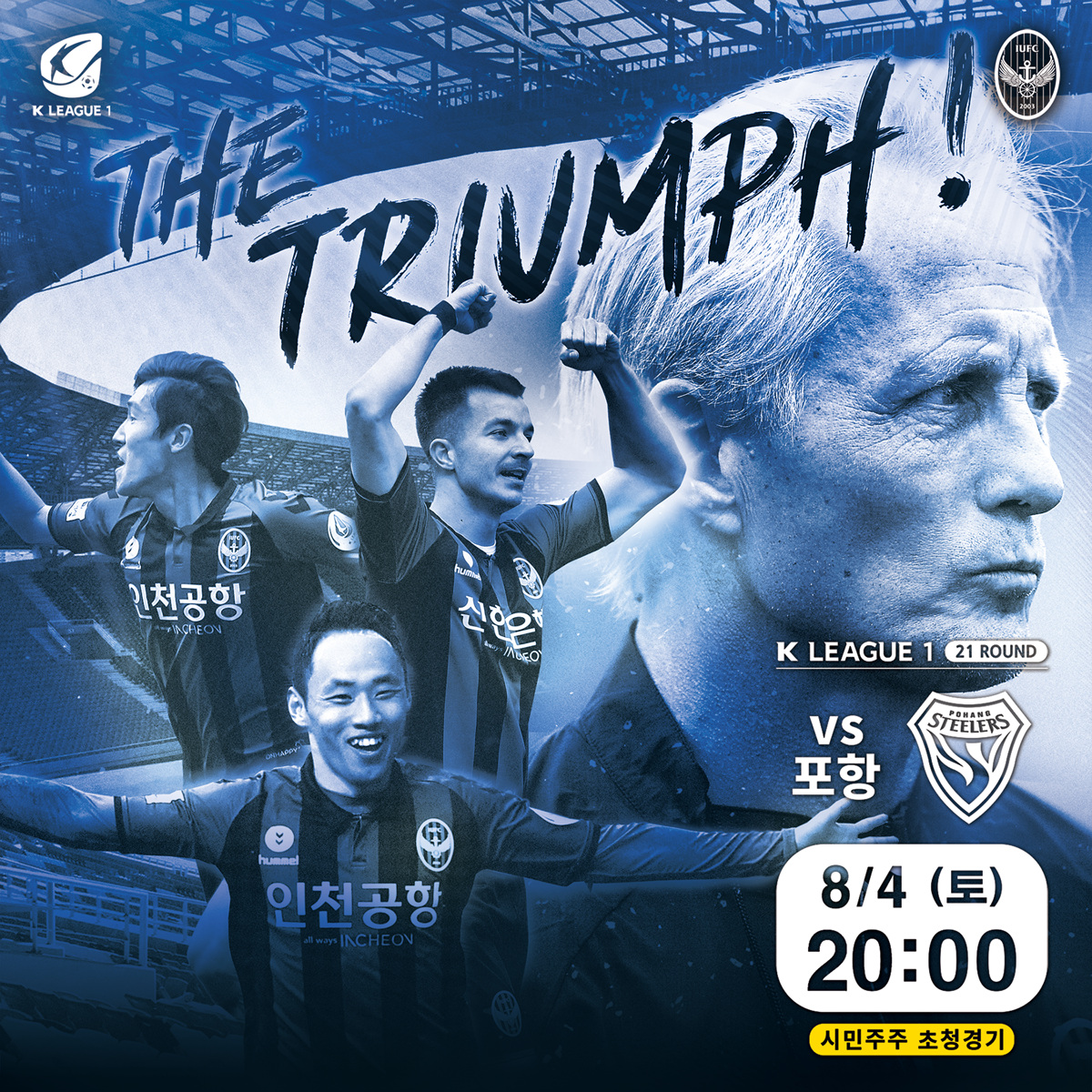 “인천유나이티드 시민주주 모두 모여라”8/4(토) 오후 8시. 우리 인천유나이티드가 포항스틸러스를 상대로 시즌 11번째 홈경기를 치릅니다. 올 시즌 첫 리그 3연승을 노리는 인천의 위대한 도전에 팬 여러분 모두 함께해주세요♡