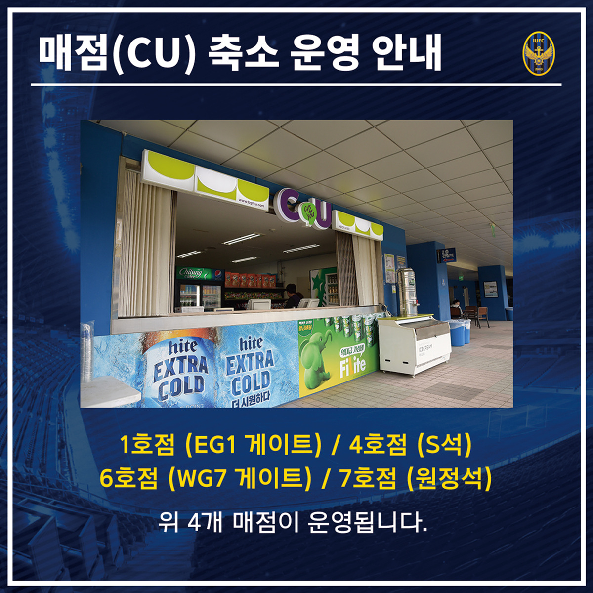 - 매점 운영 (SG4게이트 방향 매점 미운영)