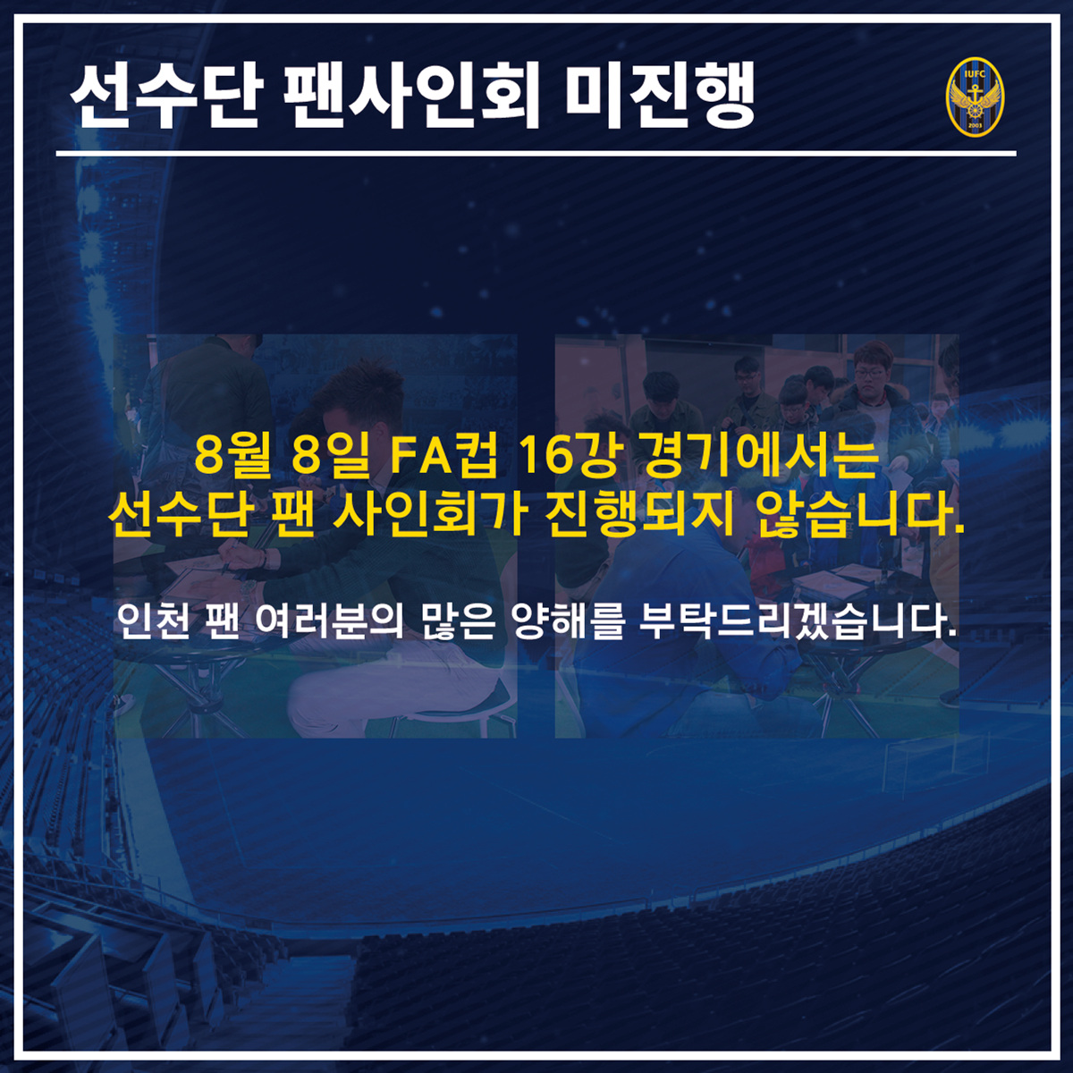 - 선수단 팬 사인회 및 응원배우기 미진행