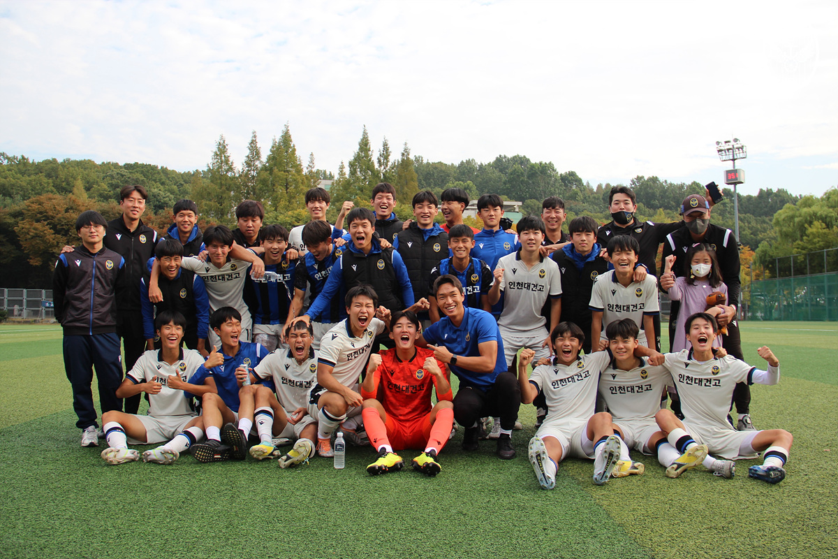 최재영 감독이 이끄는 인천 대건고는 15일 안양 자유공원 축구장에서 열린 ‘2022 K리그 주니어 U18’ 후기 8라운드 FC안양 U-18 안양공업고등학교와의 원정경기에서 4-0으로 승리했다.