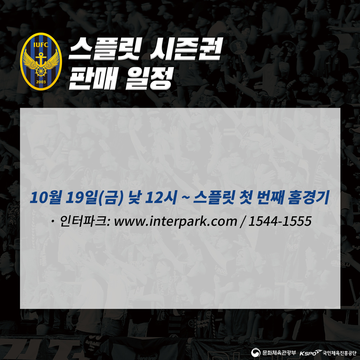 스플릿 시즌권은 오늘(10/19) 정오부터 구단 홈페이지 및 인터파크 티켓에서 판매하고 있으니, 팬 여러분의 많은 관심과 구매를 부탁드립니다.