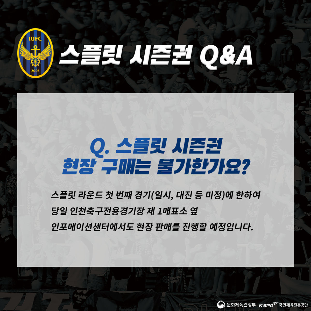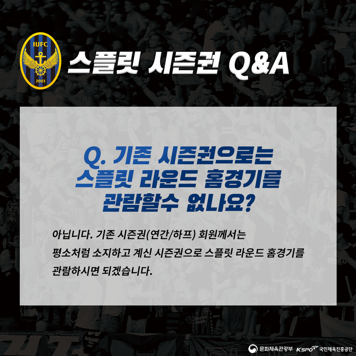 그밖에 스플릿 시즌권과 관련한 자세한 내용은 본 게시글에 있는 카드뉴스 및 구단 홈페이지 등을 참고해주시기 바랍니다. 감사합니다.