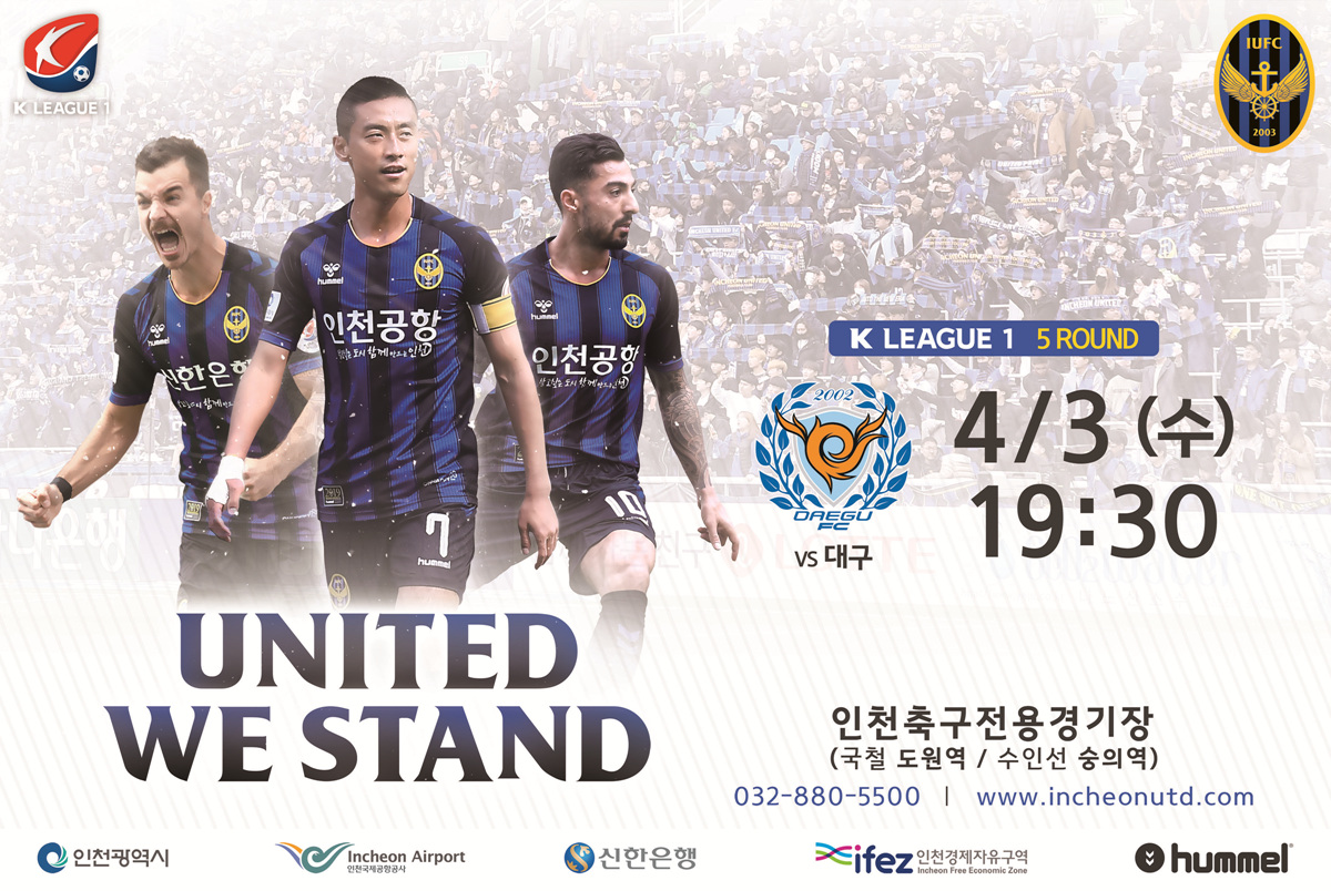 안데르센 감독이 이끄는 인천은 4월 3일 수요일 오후 7시 30분 인천축구전용경기장에서 펼쳐지는 ‘하나원큐 K리그 1 2019’ 5라운드 홈경기에서 안드레 감독이 이끄는 대구를 상대로 시즌 두 번째 승리를 노린다.