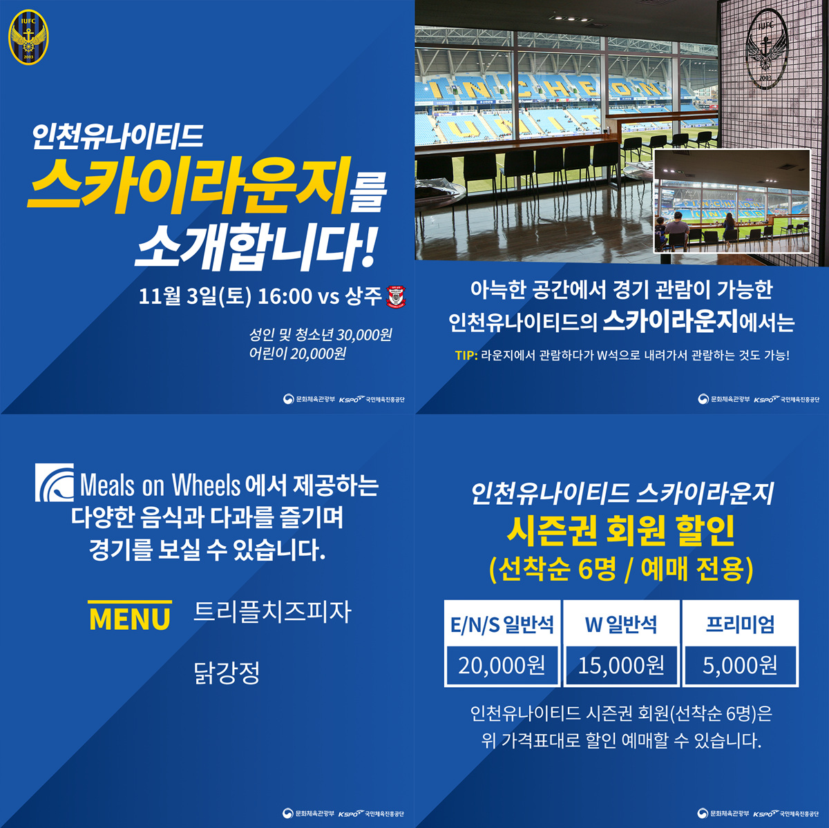 11/3(토) 16:00 인천축구전용경기장▶ 티켓 예매(10% 할인) : https://goo.gl/yCAsdj▶ 고객센터 : 032-880-5500‘밀스온휠스’ 푸드트럭 4대 입점