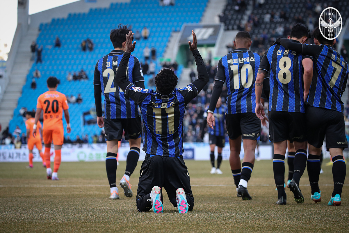 [UTD기자단=인천] 드디어 시즌 첫 승에 성공했다. 꿀맛 같은 승점 3점을 획득했다. 조성환 감독이 이끄는 인천유나이티드는 12일 인천축구전용경기장에서 펼쳐진 ‘하나원큐 K리그 1 2023’ 3라운드 홈 경기에서 제주유나이티드를 만나 1-0 승리를 거뒀다.