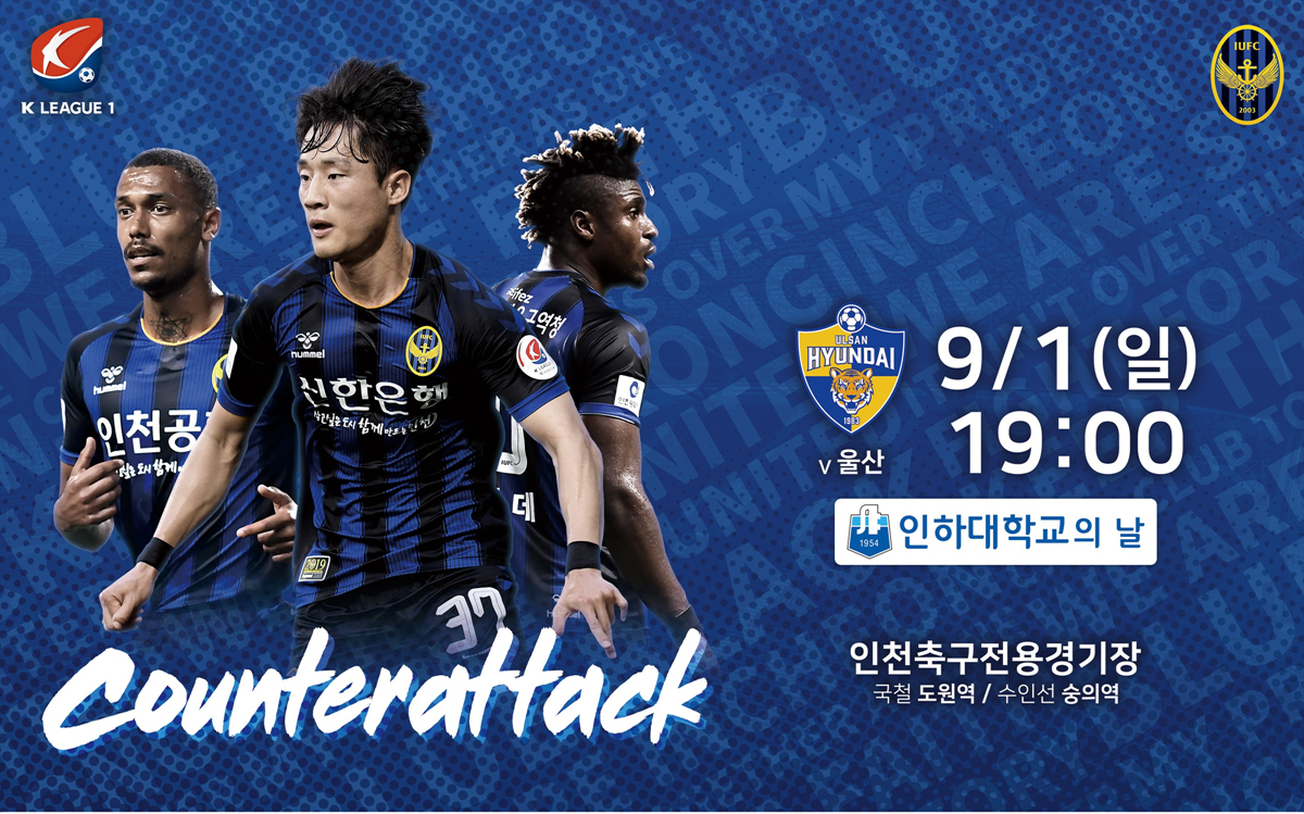 인천 구단 관계자는 “9월의 첫날 펼쳐지는 이번 울산전은 스플릿라운드 돌입 전 반드시 승리해야 하는 경기다. 많은 인천 팬들과 인하대 재학생, 동문 여러분이 경기장에 찾아와 응원해주신다면 선수들도 힘을 낼 수 있을 것”이라고 말했다.