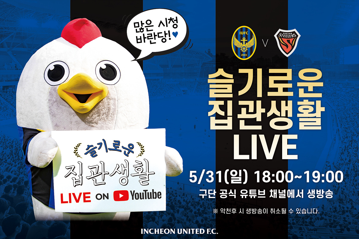 인천 구단은 이번 무관중 홈경기에서 경기장에 찾아올 수 없는 인천 팬들을 위해 킥오프 1시간 전부터 랜선 이벤트 ‘슬기로운 집관생활 LIVE’를 준비했다. 안영민 장내 아나운서의 진행 속에 인천 구단 공식 유튜브 채널에서 생방송 된다.