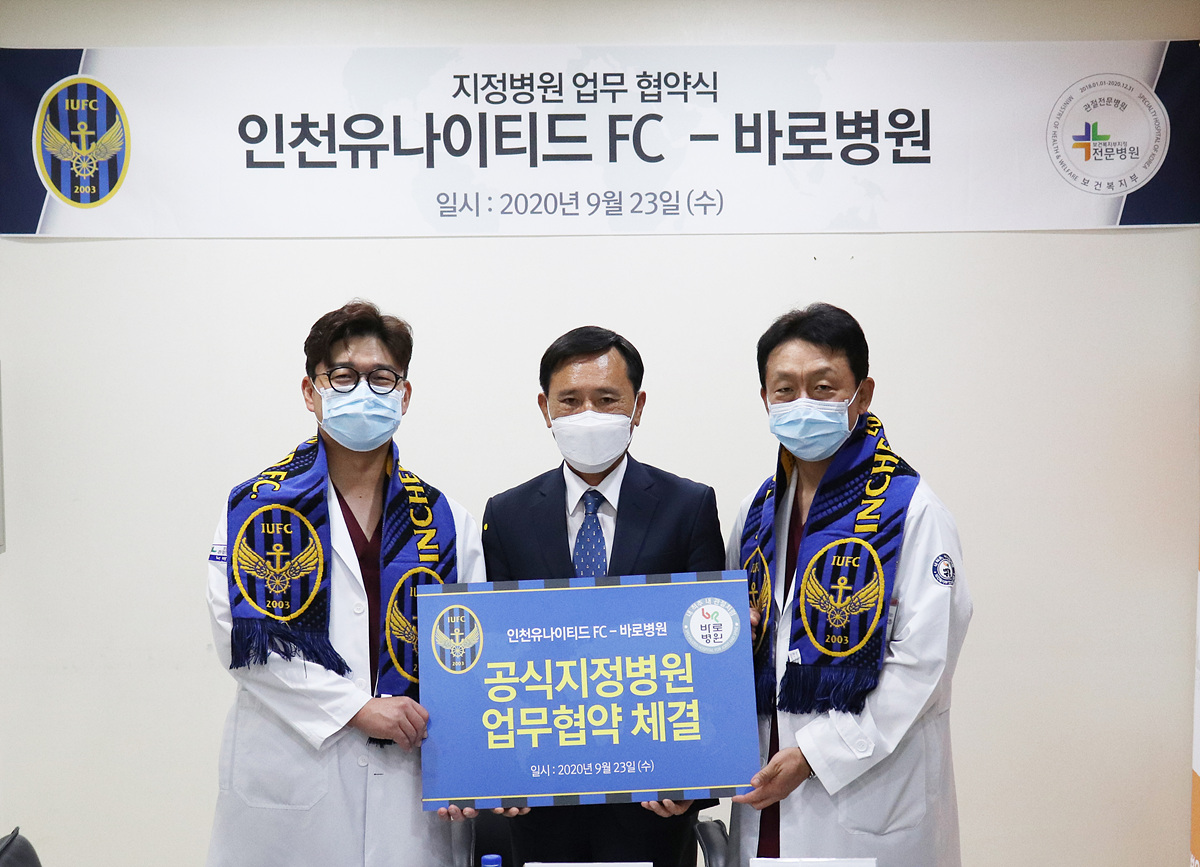 인천유나이티드 프로축구단과 바로병원이 상생협약을 체결했다.