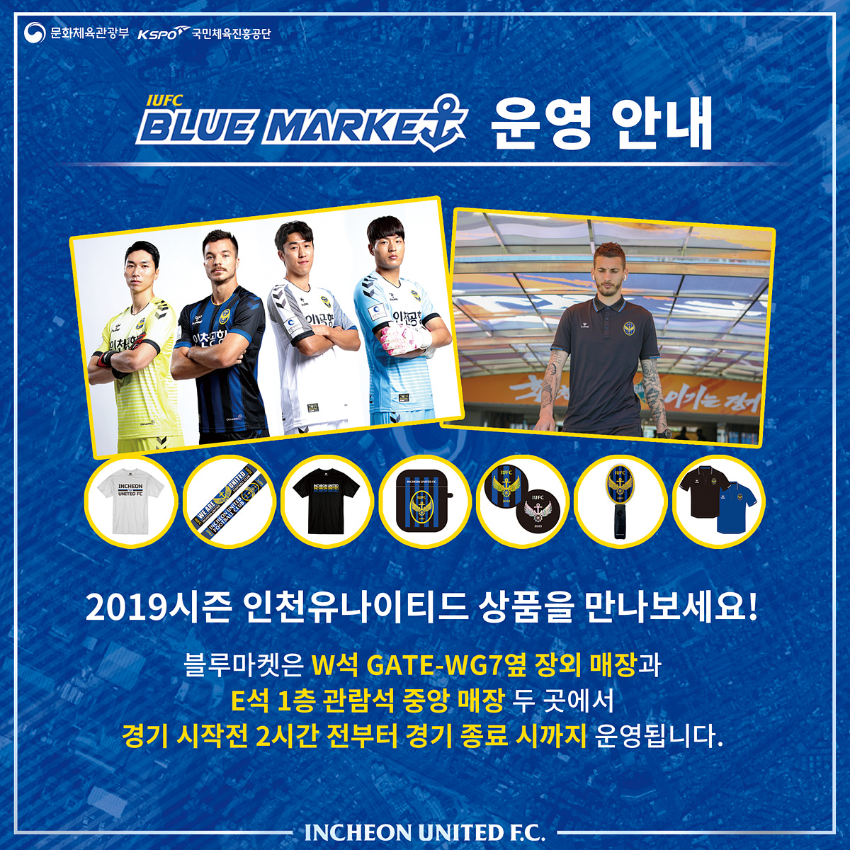 인천유나이티드는 공삼이컴퍼니와 함께 MD사업을 진행하고 있습니다. 블루마켓에서는 유니폼, 사인볼, 머플러, 트레이닝복, 구단 뱃지 등 다양한 상품을 만나보실 수 있습니다. 특히 여름철을 맞이해 프로 선수단이 착용하는 이동복이 출시되었습니다. 이밖에도 폴로셔츠를 비롯해 응원봉, 스마트핀, 에어팟 케이스, 미니 스카프 등이 판매되오니 팬 여러분들의 많은 이용을 부탁드립니다.