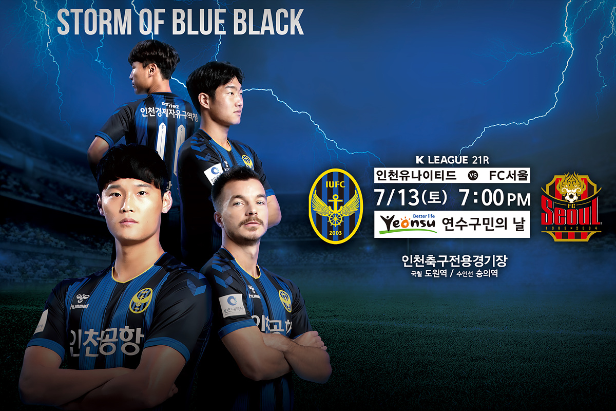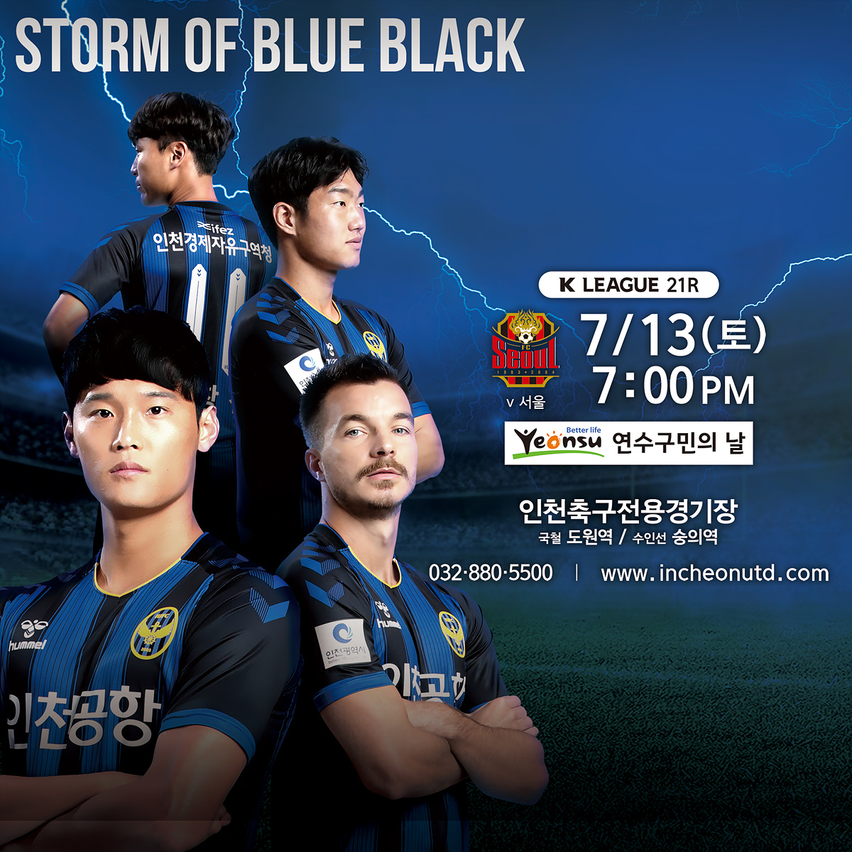 “분위기 반전을 위해 승리가 절실한 인경전(戰)”7/13(토) 오후 7시. 우리 인천유나이티드가 FC서울을 상대로 올 시즌 11번째 홈경기를 치릅니다. 인천 팬 여러분, 분위기 반전을 위해 꼭 이겨야 하는 이번 서울전 홈경기에 많이 찾아주시어 다 함께 인천의 승리를 힘껏 염원해주세요!