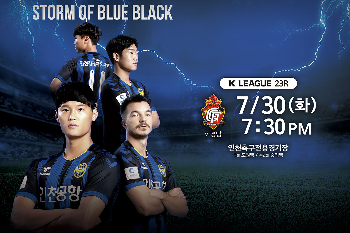 “연승을 통해 후반기 반등을 이뤄내자”7/30(화) 오후 7시 30분. 우리 인천유나이티드가 경남FC를 상대로 올 시즌 12번째 홈경기를 치릅니다. 인천 팬 여러분, 화요일 저녁에 열리는 경남전 홈경기에 많이 찾아주시어 다 함께 인천의 연승과 후반기 반등을 힘껏 응원해주세요!