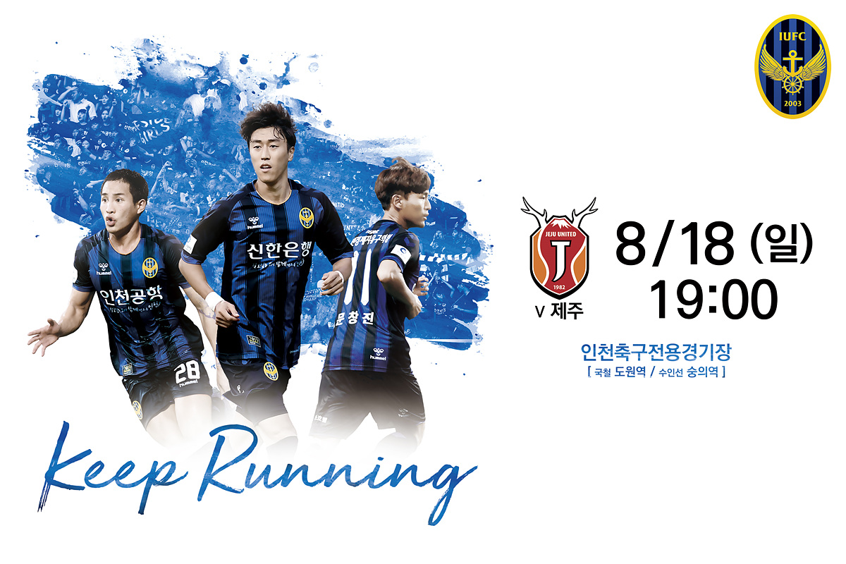 “강등권 싸움을 위해 중요한 경기, 승리로 후반기 대반등 노린다”8/18(일) 오후 7시. 우리 인천유나이티드가 제주유나이티드를 상대로 올 시즌 14번째 홈경기를 치릅니다. 인천 팬 여러분, 강등권 탈출 경쟁 중인 제주와의 홈경기에 많이 찾아주시어 다 함께 인천의 연승과 후반기 반등을 힘껏 응원해주세요!