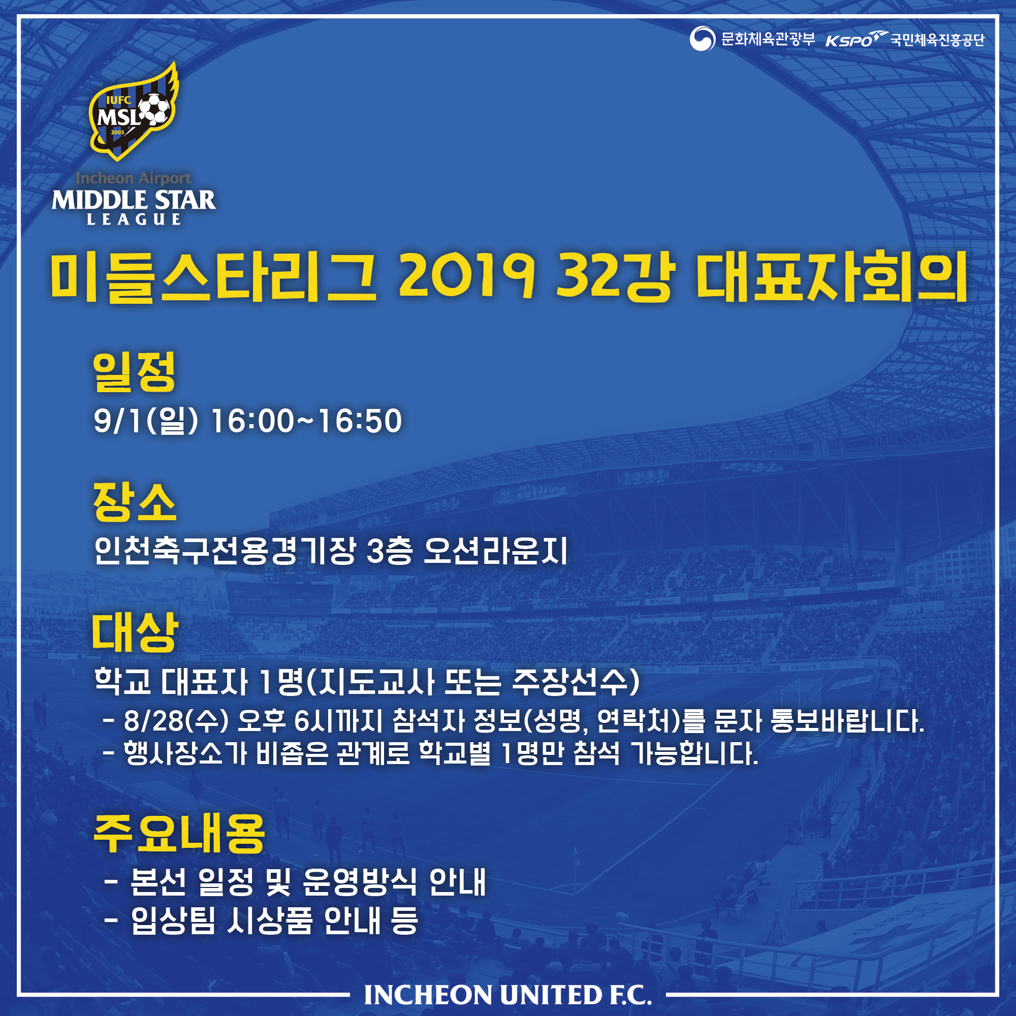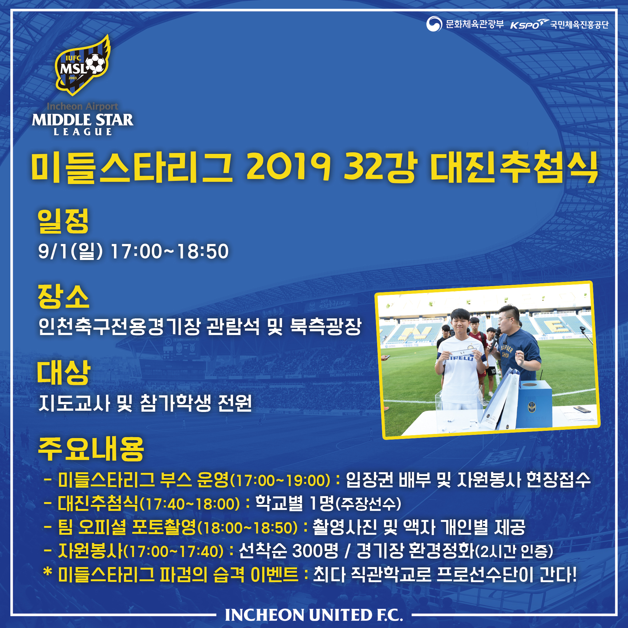 9/1 인천국제공항공사 미들스타리그 32강 대진추첨식 행사 안내